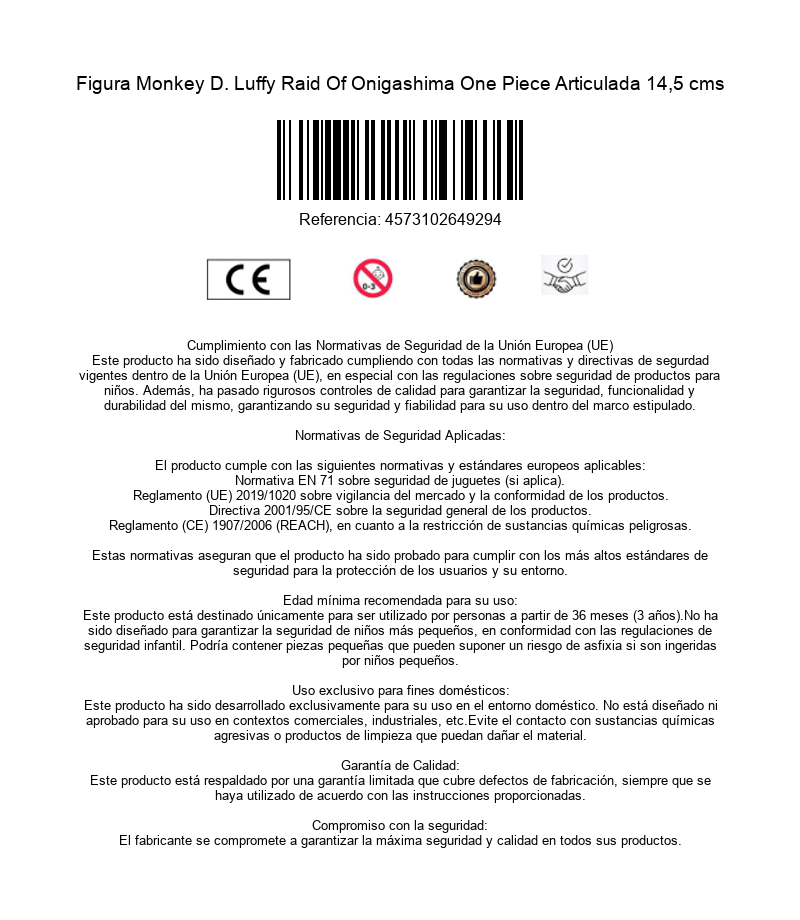 La línea SH Figuarts de One Piece ha creado una figura de acción articulada de Monkey. D Luffy basada en The Raid of Onigashima. Mide 14,5 cm y está hecha de PVC de gran calidad. Incluye tres expresiones adicionales, dos pares de manos intercambiables y pelo alternativo. Viene en una caja con ventana y fotos de la figura.