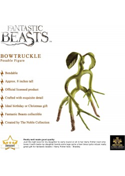 El Bowtruckle es un guardián de árboles que es extremadamente difícil de avistar, y mucho más de atrapar. Este Bowtruckle flexible de 18 cms, que nos trae The Noble Collection, es el fiel amigo y leal acompañante de Newt Scamander, el criptozoólogo y mago, protagonista de “Animales fantásticos y donde encontrarlos”, la saga creada por J.K. Rowling. Es un artículo oficial del Wizarding World, y será una de tus nuevas figuras preferidas, ¡seguro!