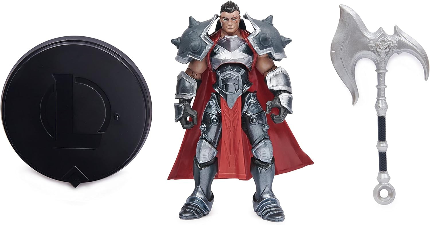 Darius, el temido líder de Noxus en League of Legends, es un coloso implacable en el campo de batalla. Con su enorme hacha y su imponente presencia, desata la furia de su "Hemorragia" y ejecuta a sus enemigos con su ultimate "Guillotina Noxiana". Su sed de poder y dominio lo convierte en un rival formidable. Esta figura de Spin Master es una primera edición de la The Champion Collection, e incluye el hacha y una peana de exposición.