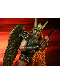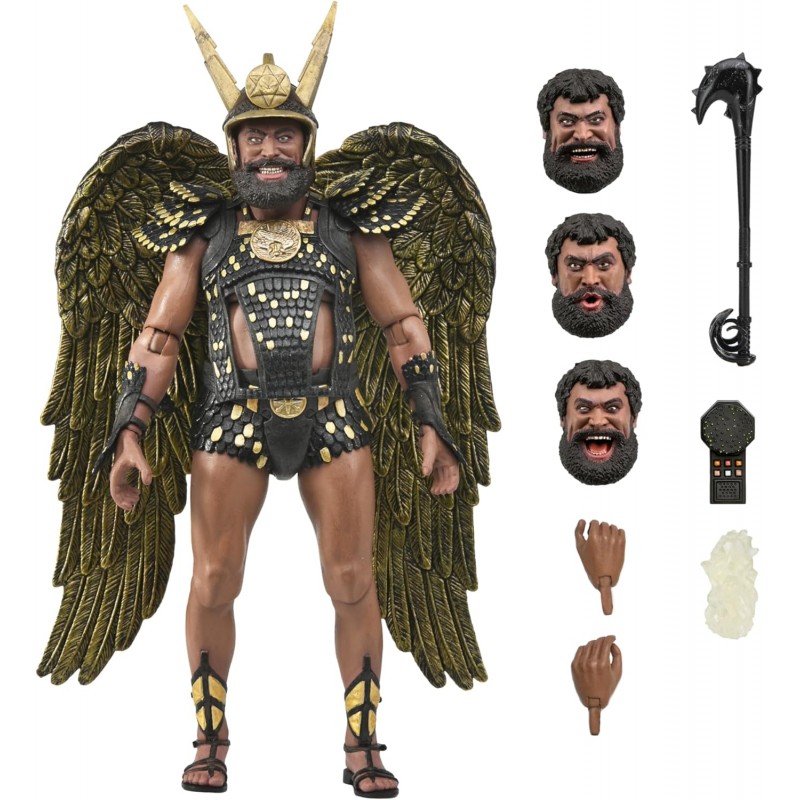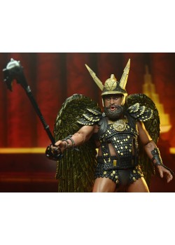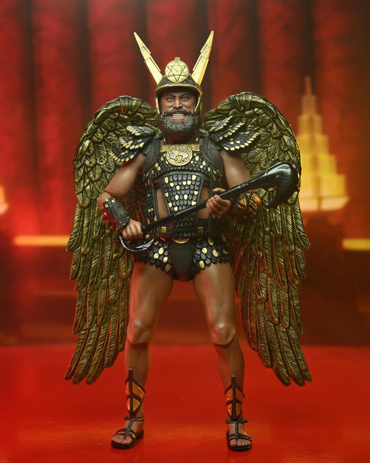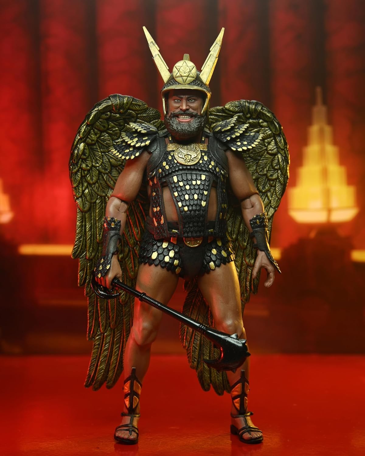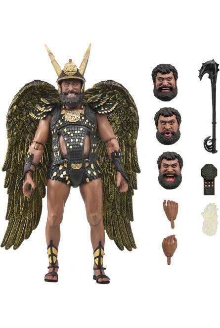 La figura del Príncipe Vultan de Neca es una impresionante representación del icónico personaje de "Flash Gordon". Mide 18 cms y está hecha de PVC de alta calidad, capturando con detalle su majestuoso atuendo con alas y armadura. La escultura y pintura meticulosas resaltan su imponente presencia y expresividad. Con múltiples puntos de articulación, esta figura permite recrear diversas poses dinámicas, convirtiéndola en una adición esencial para coleccionistas y fans de la clásica saga de ciencia ficción. Incluye accesorios como tres cabezas adicionales, dos manos intercambiables, un comunicador, una gema y bastón de mando. Viene en una caja temática con impresionantes fotos de la figura, tapa y ventana de exposición. Forma parte de la línea Reel Toys de Neca.