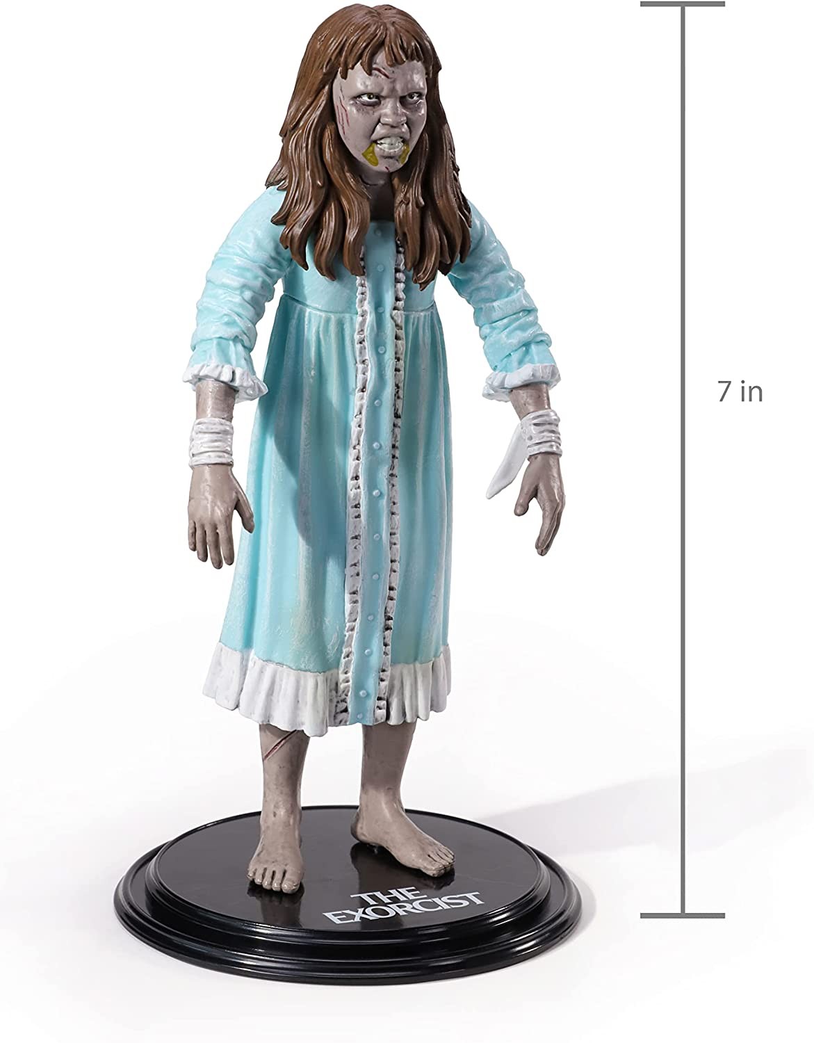 The Noble Collection brings you within its collection of flexible figures called Bendyfigs the iconic Regan MacNeil, the character played by Linda Blair in William Friedkin's film "The Exorcist". This figure, about 17 cm tall, comes with a display base that has the title of the film printed in white letters. Regan is represented as she appeared in the final bars of the horror film masterpiece, when the exorcism was at its climax and the strength and Faith of Fathers Merrin and Karras faced the darkness of the Demon Pazuzu. Get Regan and take a fragment of this wonderful film to your movie collection.