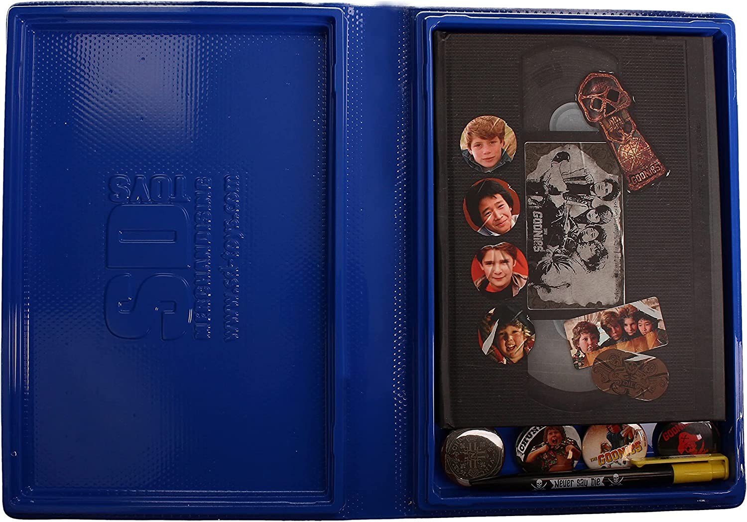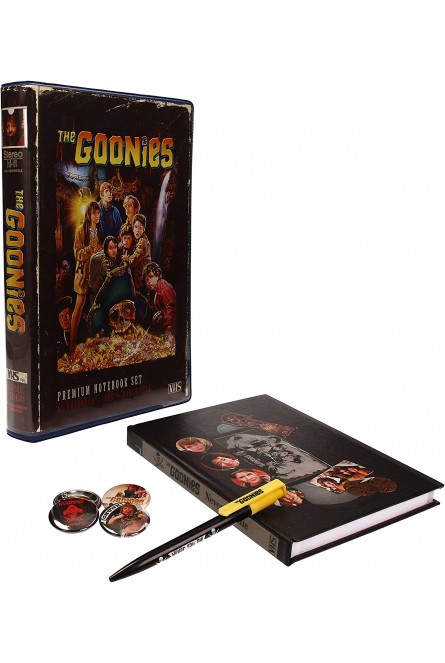 A mixture as good as peanut butter and jelly, as Stephen King said. Imagine owning a retro Goonies VHS box with a stationery set inside. That's what can be yours now thanks to SD Toys. Inside the box that imitates a VHS case you will find a pen, four badges and an A5 size notebook. All of this decorated with symbols and images from the film produced by Steven Spielberg and which was a breath of fresh air in the adventure genre.