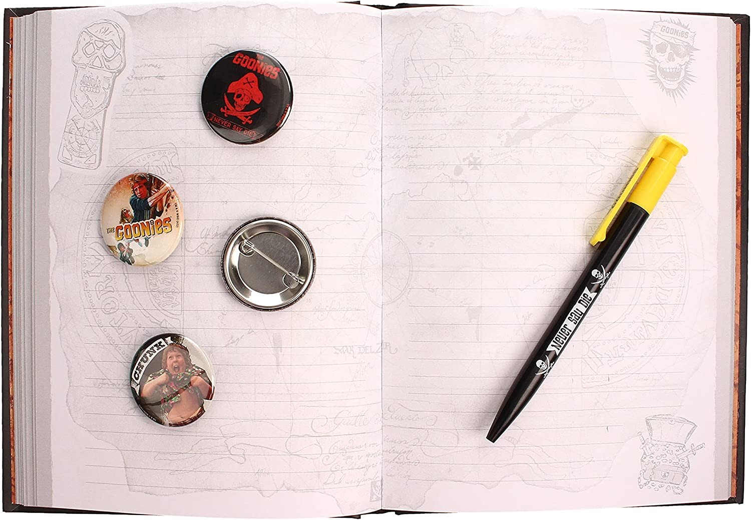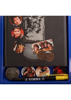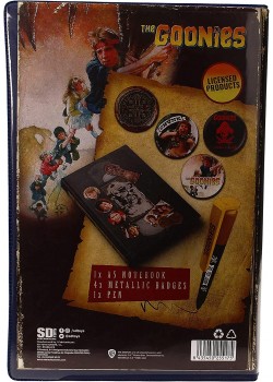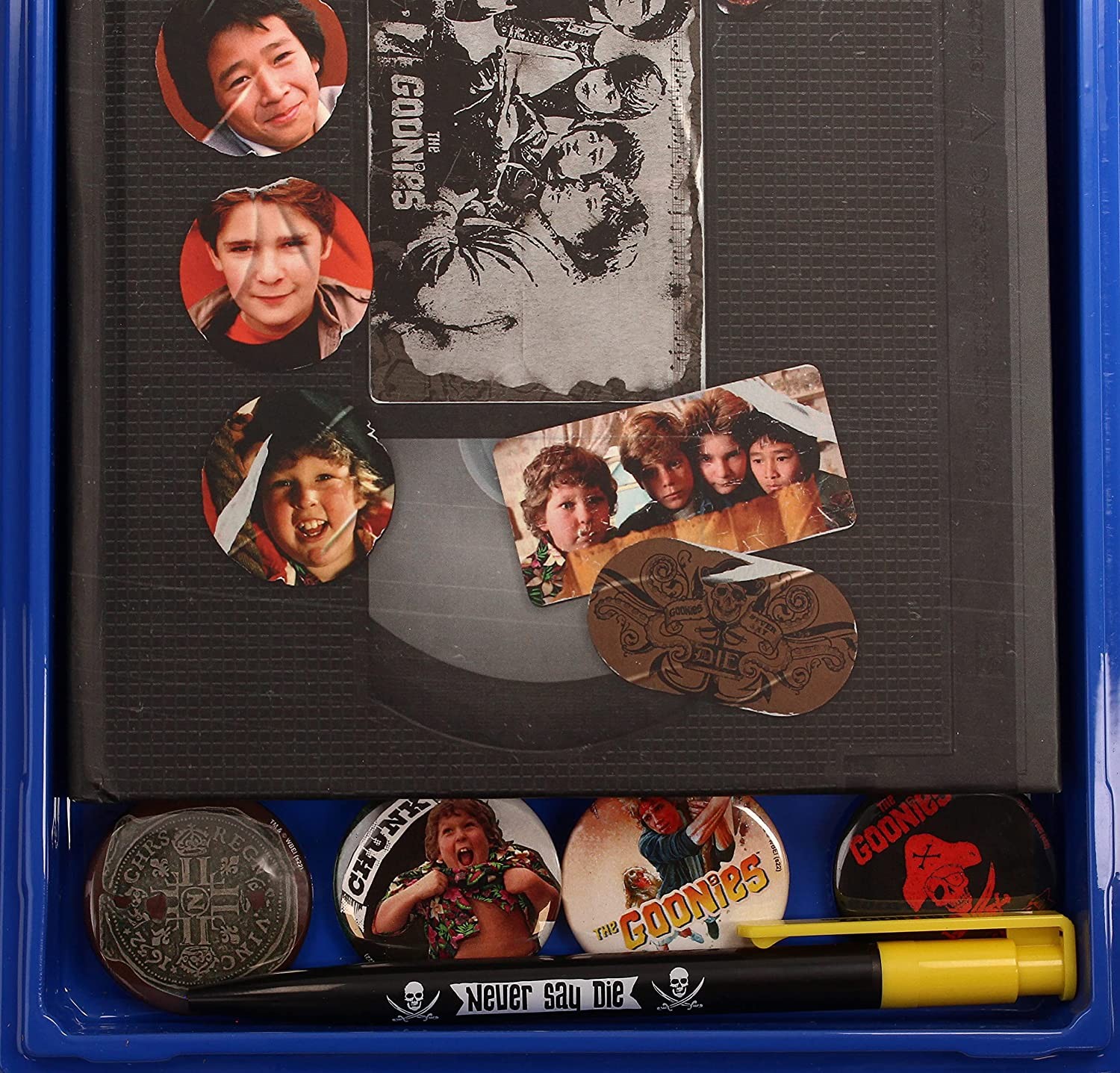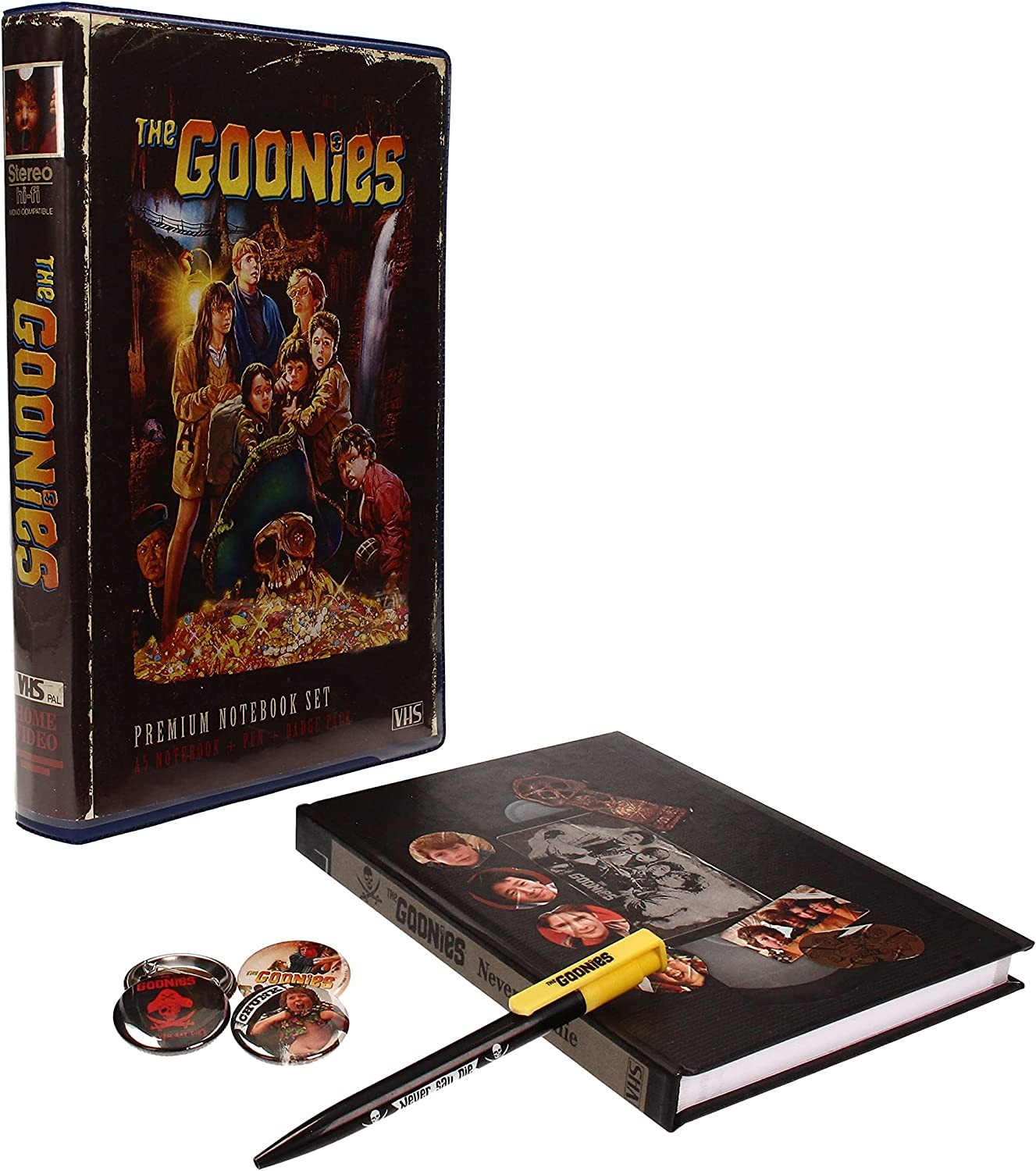 Una mezcla tan buena como la mantequilla de cacahuete y la mermelada, como decía Stephen King. Imagina poseer una caja retro de VHS de los Goonies con un set de papelería en su interior. Eso es lo que puede ser tuyo ahora gracias a SD Toys. Dentro de la caja que imita ser un estuche de VHS encontrarás un bolígrafo, cuatro chapas y un cuaderno de tamaño A5. Todo ello decorado con símbolos e imágenes de la película producida por Steven Spielberg y que supuso un soplo de aire fresco en el género de aventuras.