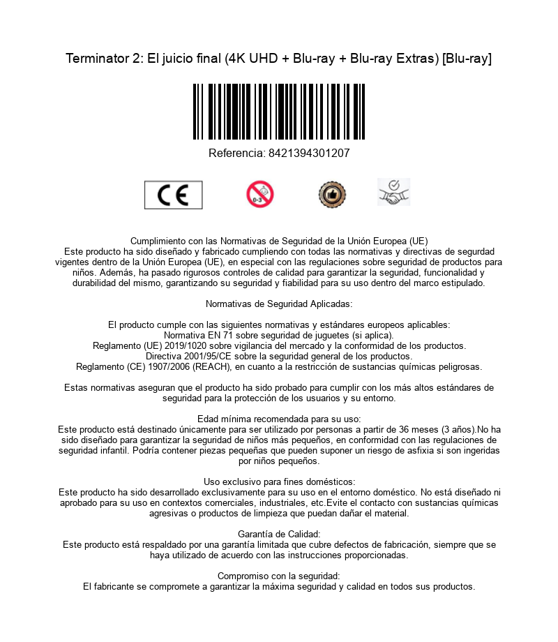 https://dvdstorespain.es/en/films/107094-terminator-2-judgment-day-bluray--8421394301207.html107094Terminator 2: Judgment Day [BLU_RAY]<div id="productDescription" class="a-section a-spacing-small"><br /><p><span>Sarah Connor's odyssey to protect her son John, future leader of the human resistance against the machines, does not end. A new, improved Terminator, a T-1000, travels from the future to eliminate a still-teenage John. But the human resistance manages to send a reprogrammed T-800 to protect John at any cost.<br /><br /> On the occasion of the 25th Anniversary of this film classic, the original negative was scanned and restored in 4K under the supervision of the technicians and specialists from Lightstorm, James Cameron's production company, who have also carried out meticulous color calibration work. .<br /><br /> Image: 2.39:1<br /><br /> Duration: 137 minutes<br /><br /> Disk region: B<br /><br /><br /> DISC 1 – 4K Ultra HDR 10 – 2.39:1 Letterbox – 137 min. Color.<br /><br /> TERMINATOR 2 CINEMATOGRAPHIC VERSION NEW RESTORATION IN 4K.<br /><br /> AUDIO: Spanish 5.1 DTS-HD MA; English 5.1 DTS-HD MA<br /><br /> SUBTITLES: Spanish<br /><br /><br /> DISC 2 - BLU-RAY – 1080p HD – 2.35:1 Letterbox – 137 min. Color.<br /><br /> TERMINATOR 2 CINEMATOGRAPHIC VERSION NEW 4K RESTORATION<br /><br /> AUDIO: Spanish 5.1 DTS-HD MA; English 5.1 DTS-HD MA / Stereo 2.0 Surround<br /><br /> SUBTITLES: Spanish<br /><br /> EXTRA CONTENT: S2: Reprogramming the Terminator • Deleted scene • Alternative ending • THX Logo • Trailer<br /><br /><br /> DISC 3 - BLU-RAY – 1080p HD<br /><br /> Includes: TERMINATOR 2 SPECIAL EDITION (DIRECTOR'S CUT) and TERMINATOR 2 EXTENDED VERSION<br /><br /> AUDIO: Spanish 5.1 DTS-HD MA; English 5.1 DTS-HD MA / Stereo 2.0 Surround<br /><br /> EXTRA CONTENT: Production audio commentary • Audio commentary by director James Cameron and screenwriter Bill Wisher • How Terminator 2 was made • Trailers: “This time there are two of them,” “The same brand, a new mission,” “More than meets the eye” ” • Teaser “Building the perfect Arnold”</span></p></div>https://dvdstorespain.es/613661-home_default/terminator-2-judgment-day-bluray-.jpg19.0083instockDivisa Own DVD Catalog19.008319.0083002023-04-03T01:32:20+0200/Start/Start/Films/Start/New/Start/4K-UHD