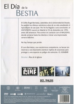 Director: Alex De La Iglesia. Actores: Alex Angulo, Armando De Razza, Santiago Segura. Música: Battista Lena. Año: 1995. Duración: 100 min. Calificación: NRM 18 años Audio: Español (Dolby Digital 5.1). Región: 2. Edición: Normal Discos: 1 Sinopsis: El fin del mundo se acerca... Un sacerdote ha descubierto que el anti-Cristo está a punto de llegar a la tierra. Para impedir que el maligno lleve a cabo sus planes, decide venderle su alma y averiguar así sus planes con antelación suficiente para boicotearlos. Un heavy y un presentador de TV serán sus compañeros en la búsqueda deseperada de una señal que les permita salvar al mundo.
