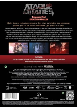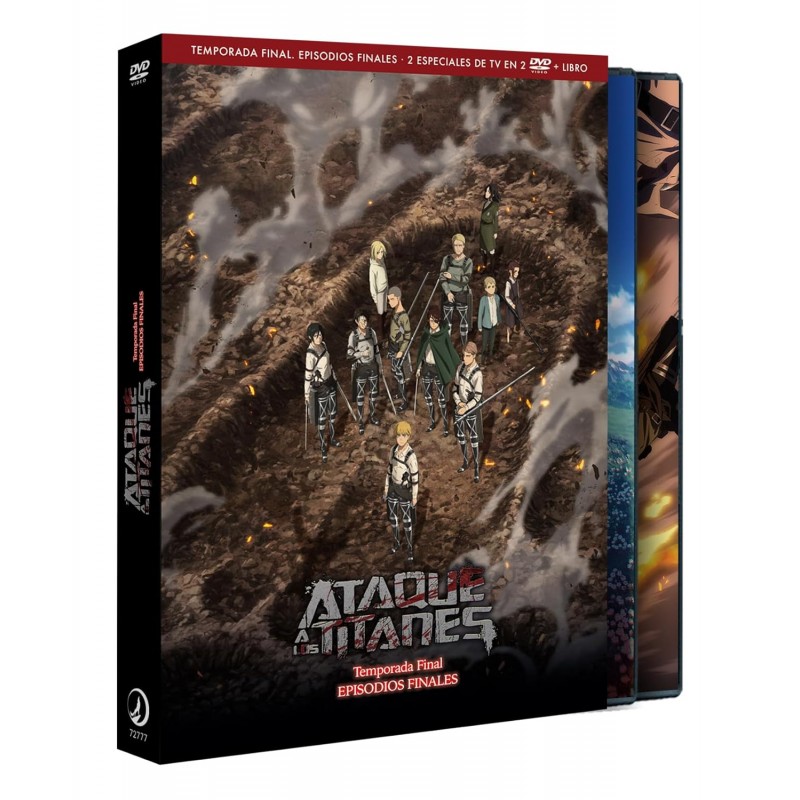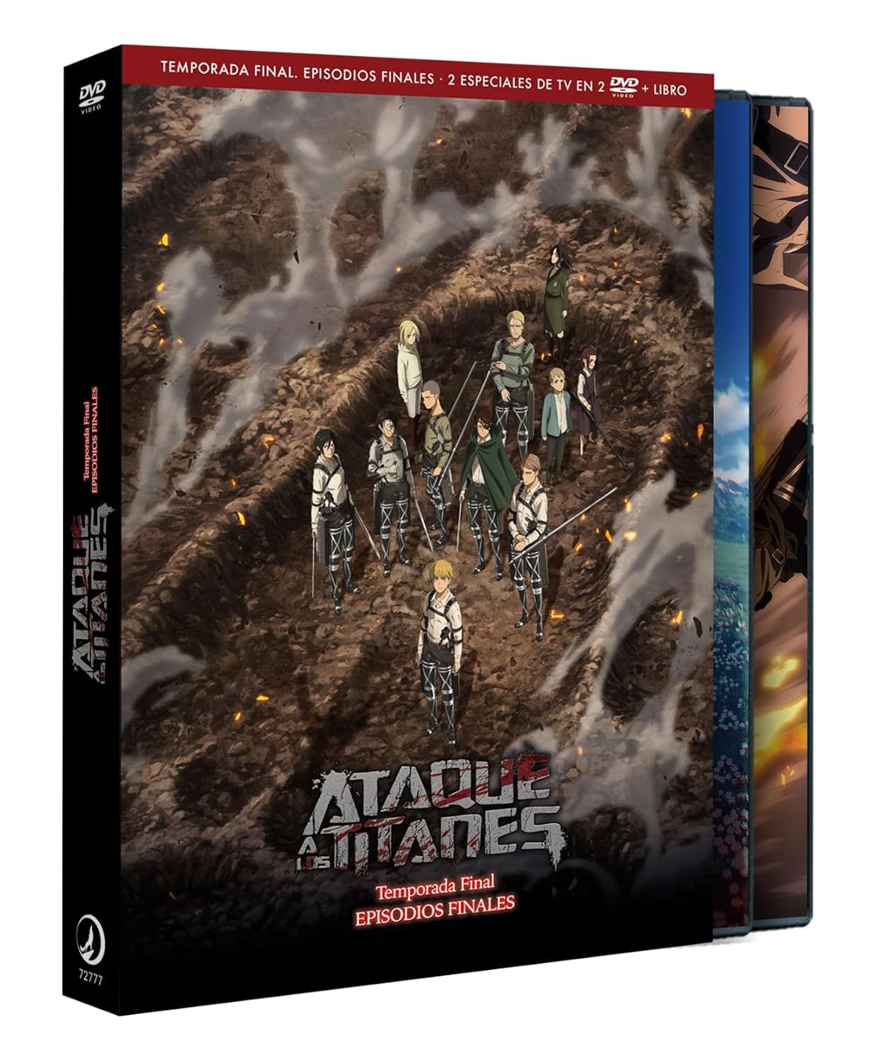 https://dvdstorespain.es/en/films/120005-ataque-a-los-titanes-capitulos-finales-dvd--8424365727778.html120005Ataque A Los Titanes (Los capítulos finales) [DVD] (2023) Shingeki no KyojinDespués de mucho sufrimiento y conflicto, Eren elige poner en marcha el retumbar que destruirá el mundo fuera de Isla Paradis. Tras despertar el poder del Titán Fundador, Eren encabeza la marcha de los Titanes del Muro hacia Fuerte Salta pisoteándolo todo a su paso y cobrándose innumerables vidas. Mientras tanto, Hange y su grupo superan el bloqueo de la facción Jaeger y avanzan por la ruta marítima, adelantándose al retumbar. Ahora lo único que se interpone entre el retumbar y los refugiados, al borde de la desesperación, son Mikasa, Armin, Jean, Conny, Reiner, Pieck, Levi y el resto de supervivientes del Cuerpo de Exploradores. Aquí es donde la batalla entre Eren y sus antiguos camaradas de armas y amigos de la infancia llega a su trágica conclusión.https://dvdstorespain.es/673796-home_default/ataque-a-los-titanes-capitulos-finales-dvd-.jpg15.7025instockSELECTA VISION15.702515.7025002024-12-26T22:32:19+0100/Start/Start/DVD/Start/Films/Start/New
