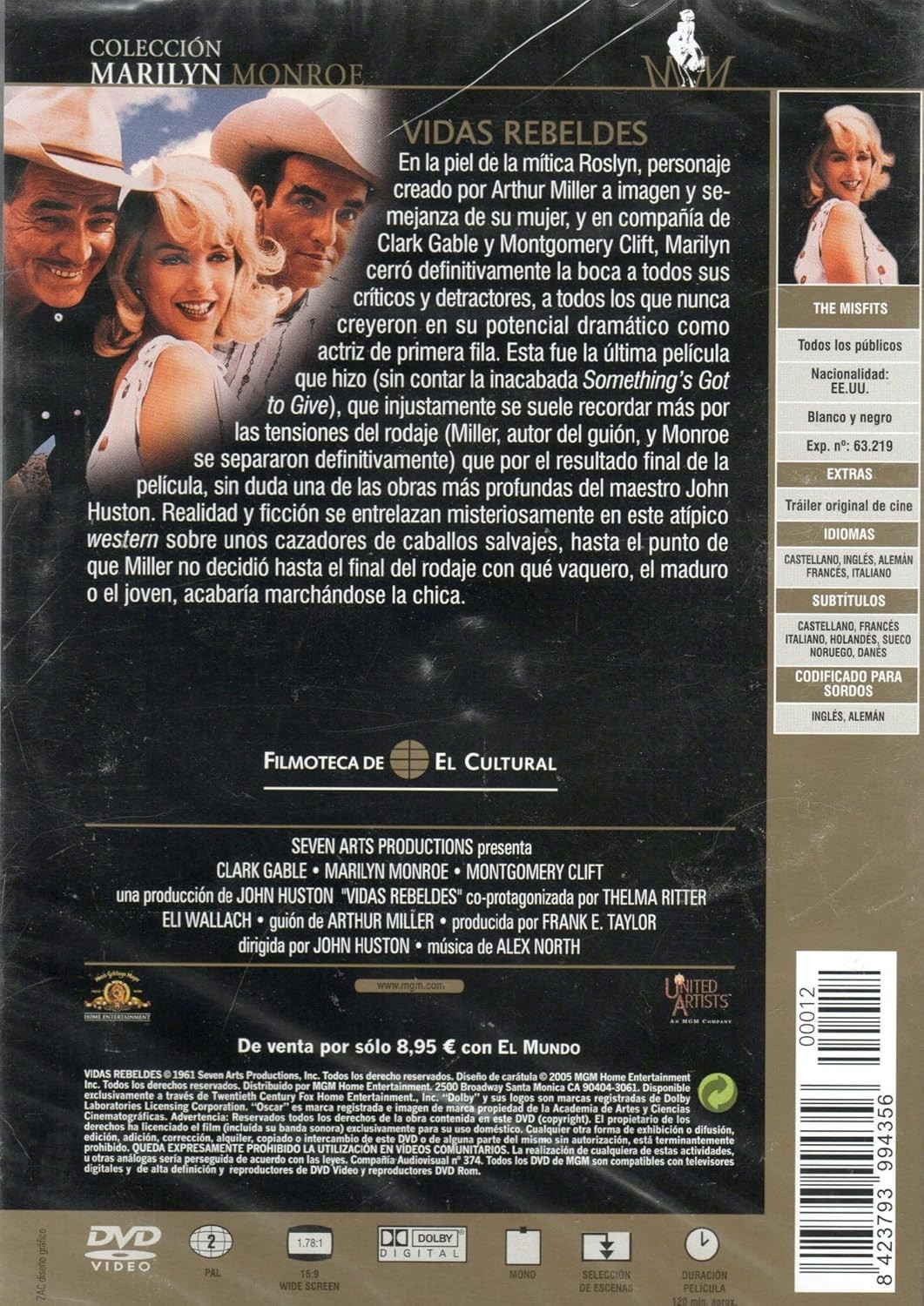 https://dvdstorespain.es/en/films/121683-vidas-rebeldes-coleccion-marilyn-monroe-pelicula-en-dvd-clasico-del-cine-dvd--0605848827637.html121683Vidas Rebeldes (Colección Marilyn Monroe) [DVD] (1961) The MisfitsRoslyn Tabor (Marilyn Monroe), una joven que llega a Reno (Nevada) para divorciarse, conoce a un viejo vaquero (Clark Gable) y decide quedarse unos días en su cabaña. Poco después, él encuentra en las montañas una manada de caballos salvajes y decide capturarlos para vender la carne, contando con la ayuda de un vaquero especialista en rodeos (Montgomery Clift). https://dvdstorespain.es/680306-home_default/vidas-rebeldes-coleccion-marilyn-monroe-pelicula-en-dvd-clasico-del-cine-dvd-.jpg7.2727instockResearch7.27277.2727002025-03-09T20:30:05+0100/Start/Start/DVD/Start/Films/Start/New