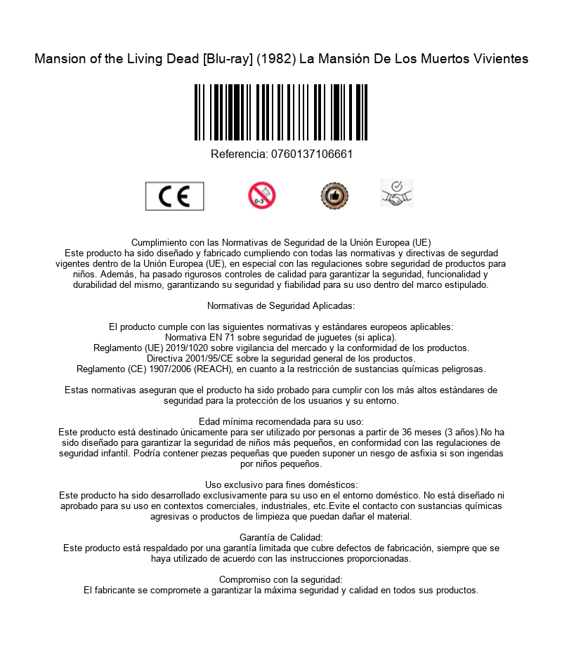 https://dvdstorespain.es/en/films/121701-mansion-of-the-living-dead-usa-blu-ray--0760137106661.html121701Mansion of the Living Dead [Blu-ray] (1982) La Mansión De Los Muertos VivientesCuatro amigas, Tina, Vicky, Marta y María, camareras de un bar en Europa Central, van de vacaciones a una playa del sur, a través de una agencia de viajes. Sus ilusiones se ven pronto truncadas. El hotel en el que se hospedan es un lugar siniestro y desierto, cuyo propietario, Carlos, es un joven misterioso. Los más oscuros presagios se ciernen sobre las chicas, que descubren la vecindad de las ruinas de un antiguo Monasterio de Templarios, y en las noches de viento, los cuerpos de los monjes salen de sus tumbas para celebrar sangrientos ritos. https://dvdstorespain.es/680357-home_default/mansion-of-the-living-dead-usa-blu-ray-.jpg21.4959instock21.495921.4959002025-03-10T22:45:21+0100/Start/Start/Blu-Ray/Start/Films/Start/New