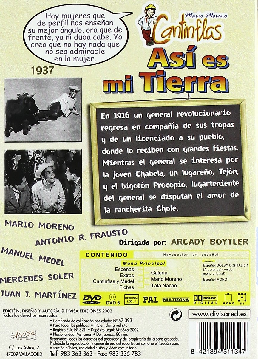 https://dvdstorespain.es/en/films/123927-asi-es-mi-tierra-dvd--8421394511347.html123927¡Así Es Mi Tierra! [DVD] (1937)En 1916, un general revolucionario regresa en compañía de sus tropas y de un licenciado a su pueblo, donde lo reciben con grandes fiestas. Mientras el general se interesa por la joven Chabela, un lugareño, Tejón, y el bigotón Procopio, lugarteniente del general, se disputan el amor de la rancherita Chole... https://dvdstorespain.es/779341-home_default/asi-es-mi-tierra-dvd-.jpg5.2893instockDivisa HV5.28935.2893002025-06-24T15:30:29+0200/Films