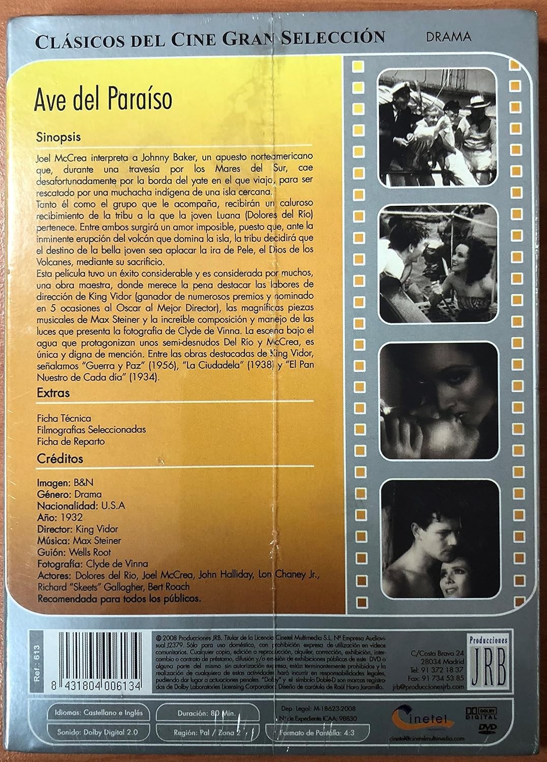 https://dvdstorespain.es/en/films/124217-ave-del-paraiso-dvd--8431804006134.html124217Ave Del Paraíso [DVD] (1932) Bird of ParadiseJohnny (Joel McCrea), un aventurero estadounidense, llega a unas islas exóticas de la Polinesia en el Pacífico Sur, y se enamora perdidamente de Luana (Dolores del Rio), la bellísima hija del jefe de una tribu local. Pero el amor de los dos jóvenes es visto con malos ojos por la gente de Luana, quienes pretenden para la joven un destino muy distinto. https://dvdstorespain.es/818841-home_default/ave-del-paraiso-dvd-.jpg12.562instock12.56212.562002025-07-03T19:45:03+0200/Films