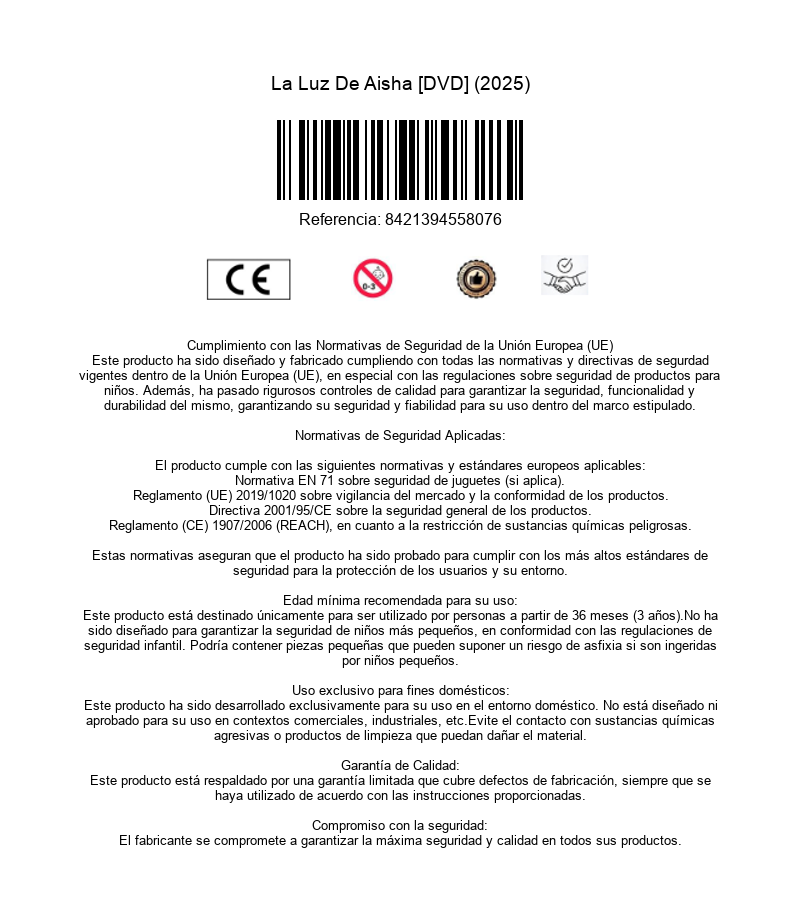 https://dvdstorespain.es/en/films/124241-la-luz-de-aisha-the-light-of-aisha-dvd-dvd--8421394558076.html124241La Luz De Aisha [DVD] (2025)Aisha vive en un reino del Al-Ándalus del siglo XI, donde los fuegos artificiales son el espectáculo más popular. Sueña con convertirse en una gran pirotécnica como el legendario Maestro Hao, pero su padre, Ahmad, insiste en que siga la tradición familiar de la caligrafía. Cuando un alquimista, Txawir, engaña a Aisha para robar un peligroso libro custodiado por su padre, Ahmad es encarcelado injustamente. Aisha emprende un viaje lleno de aventuras para recuperar el libro y liberar a su padre.https://dvdstorespain.es/845828-home_default/la-luz-de-aisha-the-light-of-aisha-dvd-dvd-.jpg15.7025instockDivisa HV15.702515.7025002025-07-05T01:30:05+0200/Start/Start/DVD/Start/Films/Start/New
