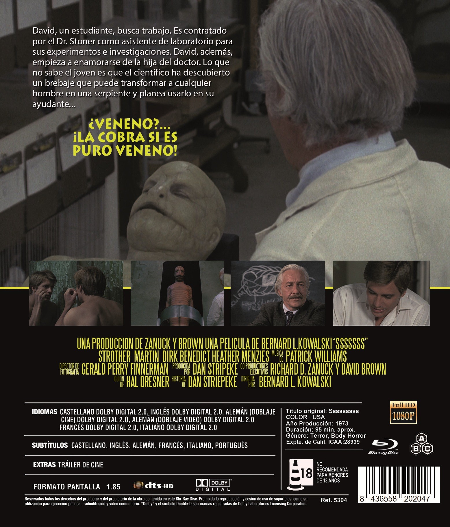 https://dvdstorespain.es/en/films/125553-sssssss-silbido-de-muerte-blu-ray-1973-sssssssss-blu-ray--8436558202047.html125553Sssssss: Silbido De Muerte [Blu-ray] (1973) SssssssssDavid, un estudiante, busca trabajo. Es contratado por el Dr. Stoner como asistente de laboratorio para sus experimentos e investigaciones. David, además, empieza a enamorarse de la hija del doctor. Lo que no sabe el joven es que el científico ha descubierto un brebaje que puede transformar a cualquier hombre en una serpiente y planea usarlo en su ayudante...https://dvdstorespain.es/1035971-home_default/sssssss-silbido-de-muerte-blu-ray-1973-sssssssss-blu-ray-.jpg10.7025instockResearch10.702510.7025002025-08-05T12:45:33+0200/Start/Start/Films/Start/New