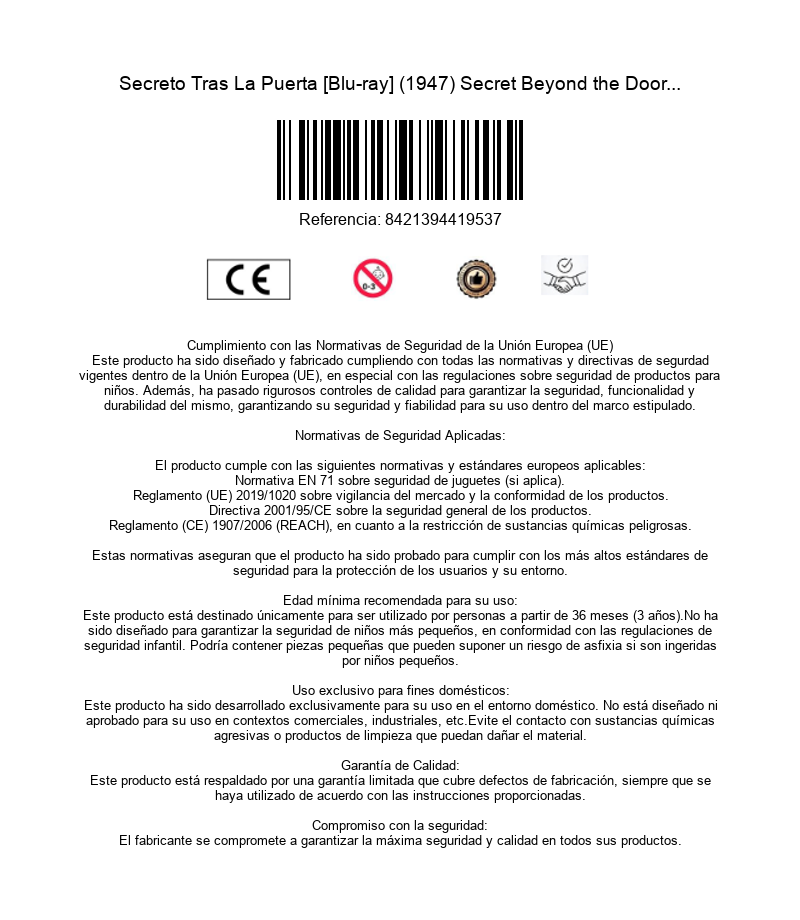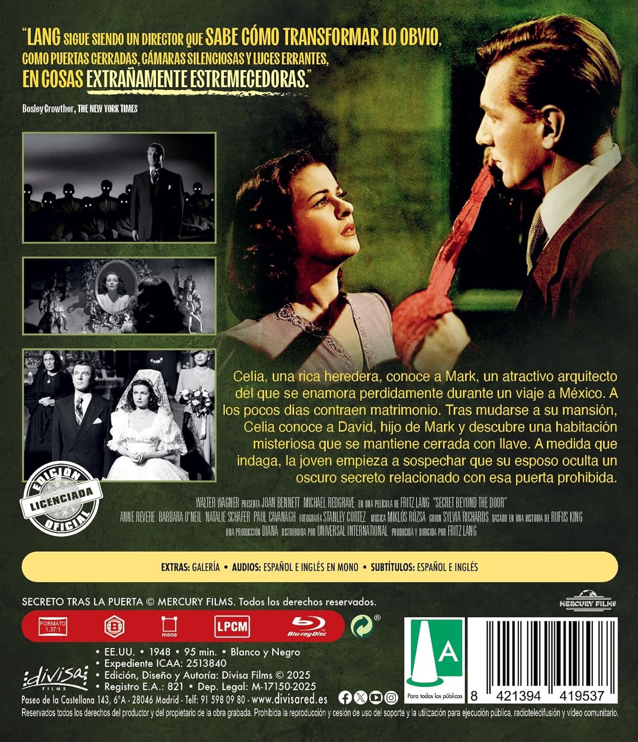 https://dvdstorespain.es/en/films/126720-secreto-tras-la-puerta-secret-beyond-the-door-1947-fritz-lang-blu-ray-blu-ray--8421394419537.html126720Secreto Tras La Puerta [Blu-ray] (1947) Secret Beyond the Door...Celia, una rica heredera, conoce a Mark, un hombre atractivo y misterioso. Se enamoran y pocos días después se casan. A medida que Celia va conociendo la vida de su marido, empieza a sospechar que oculta secretos que ella ni siquiera puede imaginar. https://dvdstorespain.es/1078531-home_default/secreto-tras-la-puerta-secret-beyond-the-door-1947-fritz-lang-blu-ray-blu-ray-.jpg14.0496instockDivisa HV14.049614.0496002025-09-11T15:31:51+0200/Start/Start/Blu-Ray/Start/Films/Start/New