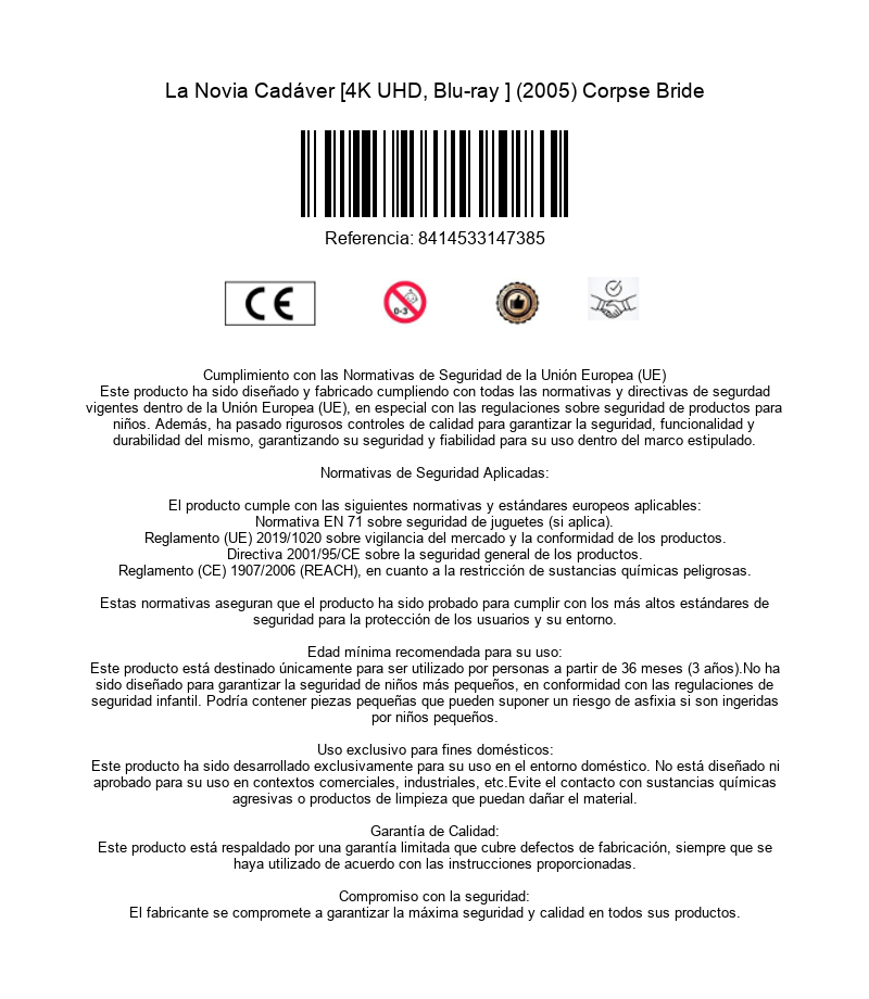 https://dvdstorespain.es/en/films/126912-la-novia-cadaver-4k-uhdbd-blu-ray--8414533147385.html126912La Novia Cadáver [4K UHD, Blu-ray ] (2005) Corpse BrideUn hombre pone en el dedo de una mujer muerta, como broma, un anillo de compromiso. Pero lo que no sabe el pobre mortal es que la muerta reclamará sus derechos como "prometida".https://dvdstorespain.es/1082523-home_default/la-novia-cadaver-4k-uhdbd-blu-ray-.jpg18.9256instockARVI18.925618.9256002025-09-27T02:31:52+0200/Start/Start/Blu-Ray/Start/Films/Start/New/Start/4K-UHD