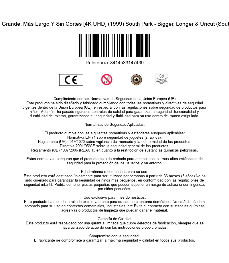 https://dvdstorespain.es/en/films/126914-south-park-mas-grande-mas-largo-y-sin-cortes-4k-uhd-blu-ray--8414533147439.html126914South Park: Más Grande, Más Largo Y Sin Cortesanimación [4K UHD] (1999) South Park - Bigger, Longer & Uncut (South Park: The MovCuando los estudiantes de la escuela primaria de South Park, Stan, Kyle, Cartman y Kenny, deciden entrar a escondidas a ver una película canadiense no apta para menores, su vocabulario sufre un cambio brutal. La indignación de los padres, tras el devastador impacto que sufren sus inocentes y jóvenes mentes al ver la película, da lugar a una incondicional guerra entre Estados Unidos y Canadá. Inesperadamente, los chicos se ven inmersos en una crisis debiendo arriesgar sus vidas en nombre de la libertad de expresión.https://dvdstorespain.es/1082527-home_default/south-park-mas-grande-mas-largo-y-sin-cortes-4k-uhd-blu-ray-.jpg17.2727instockARVI17.272717.2727002025-09-27T02:32:22+0200/Start/Start/Films/Start/New/Start/4K-UHD