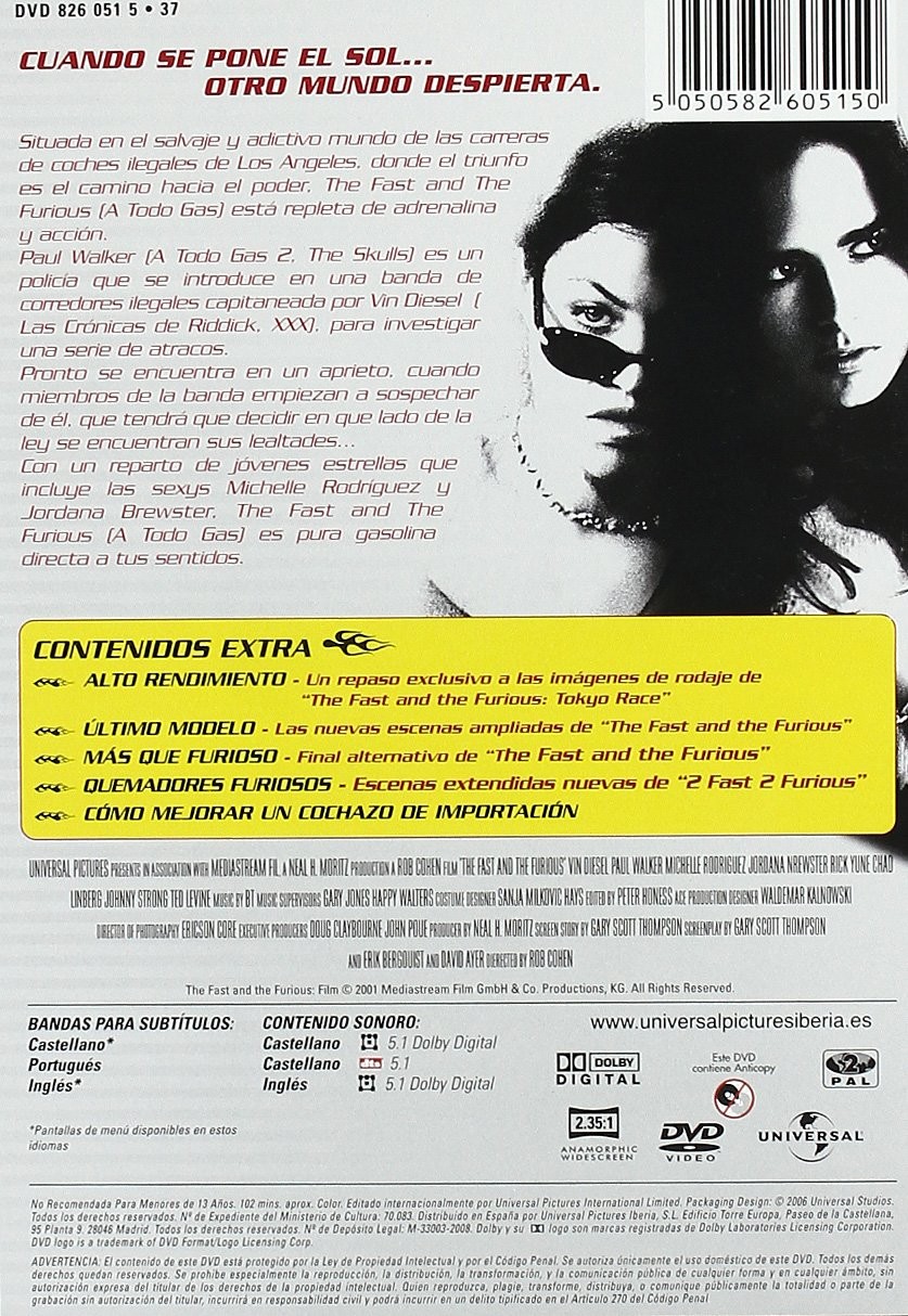 https://dvdstorespain.es/en/films/127352-a-todo-gas-edicion-especial-dvd-2013--5050582605150.html127352A Todo Gas (Edición especial) [DVD] (2001) The Fast and the FuriousUna misteriosa banda de delincuentes se dedica a robar camiones en marcha desde vehículos deportivos. La policía decide infiltrar un hombre en el mundo de las carreras ilegales para descubrir posibles sospechosos. El joven y apuesto Brian entra en el mundo del tunning donde conoce a Dominic, rey indiscutible de este mundo y sospechoso número uno, pero todo se complicará cuando se enamore de su hermana. https://dvdstorespain.es/1091220-home_default/a-todo-gas-edicion-especial-dvd-2013-.jpg7.2727instockParamount7.27277.2727002025-10-20T20:15:56+0200/Start/Start/DVD/Start/Films/Start/New