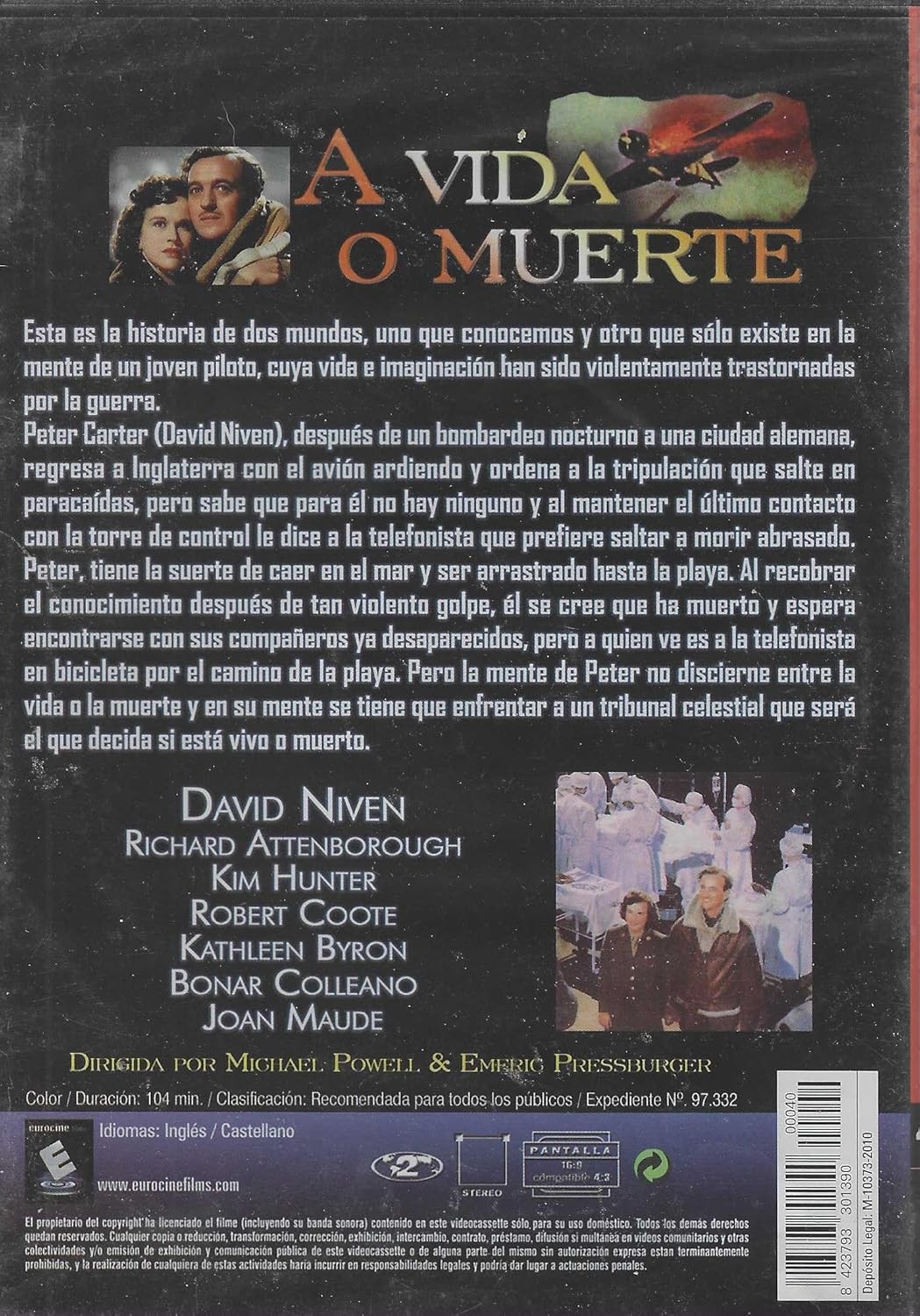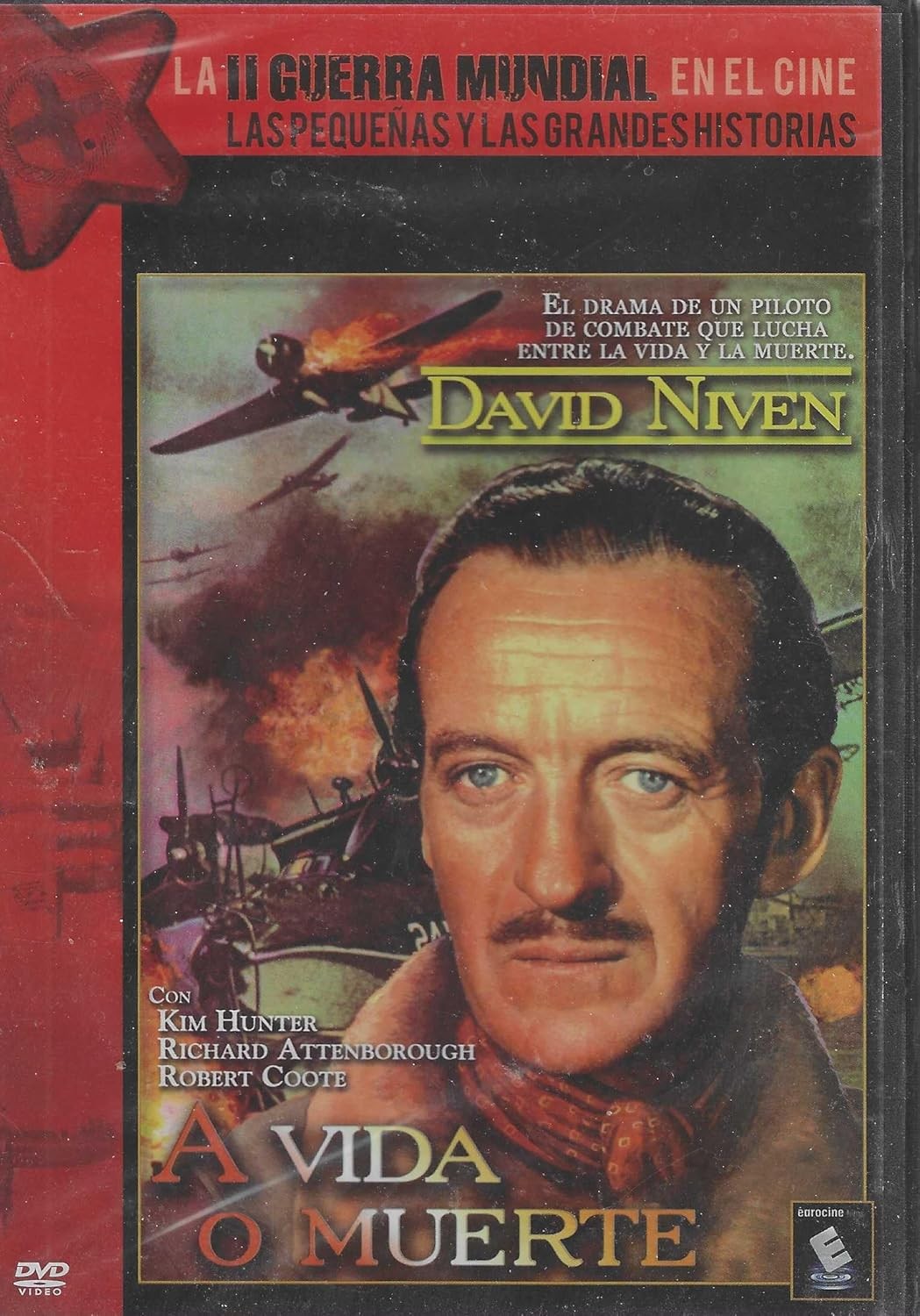 https://dvdstorespain.es/en/films/128523-a-vida-o-muerte-dvd-coleccion-la-ii-guerra-mundial-en-el-cine-edicion-slim-dvd-2024--0634065165086.html128523A Vida o Muerte (Edición Slim) [DVD] (1946) a Matter of Life and Death (Stairway to Heaven)El aviador británico Peter Carter, en su avión en llamas y a punto de estrellarse se enamora de la voz femenina que contesta a su mensaje de socorro. Parece que se ha salvado milagrosamente y encuentra a su interlocutora. Pero un enviado del más allá le notifica que está entre la vida y la muerte y que si quiere sobrevivir, tendrá que defender su caso ante un tribunal celestial. Simultaneamente a esta situación sobrenatural, un equipo de médicos lucha en el quirófano para curar a Peter una lesión en el cerebro.https://dvdstorespain.es/1113887-home_default/a-vida-o-muerte-dvd-coleccion-la-ii-guerra-mundial-en-el-cine-edicion-slim-dvd-2024-.jpg5.2893instock5.28935.2893002025-12-24T08:47:07+0100/Start/Start/DVD/Start/Films/Start/New