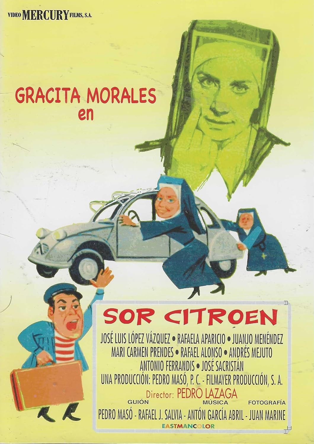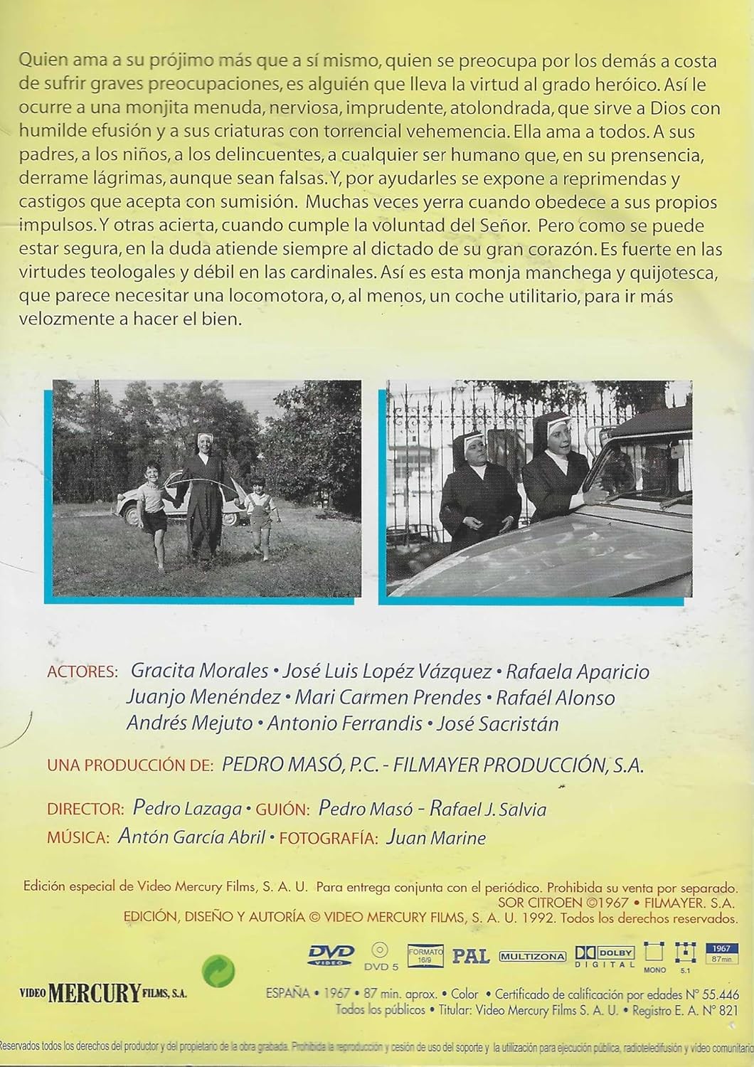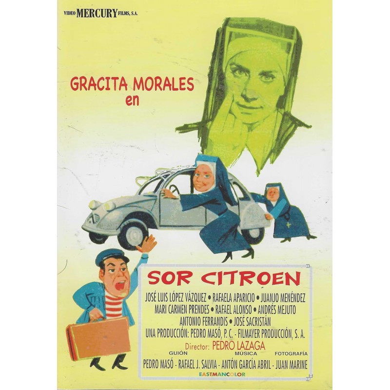https://dvdstorespain.es/en/films/128585-sor-citroen-dvd-edicion-sobre-dvd-2024--0634065165376.html128585Sor Citroën (Edición Sobre) [DVD] (1967)Una comunidad de monjas, que tiene a su cargo un orfanato para niñas, decide motorizarse. Un coche les es muy necesario en sus diversas labores y, tras firmar las consabidas letras, se hacen con el vehículo: un Citroën 2CV. A la hermana Tomasa (Gracita Morales), la más moderna y rebelde de la congregación, le toca conducirlo. Pronto será conocida en todas las calles de Madrid como 'Sor Citroën'. Un 'título' otorgado tras sufrir mil y una peripecias al volante cuando era principiante. Ya totalmente motorizadas, sor Tomasa y sor Rafaela (Rafaela Aparicio) deberán ampliar la recaudación de las donaciones y encargarse de unos hermanos huérfanos, niña y niño, que no pueden convivir juntos por la segregación por sexos religiosa.https://dvdstorespain.es/1114980-home_default/sor-citroen-dvd-edicion-sobre-dvd-2024-.jpg4.9587instock4.95874.9587002025-12-27T06:46:42+0100/Start/Start/DVD/Start/Films/Start/New