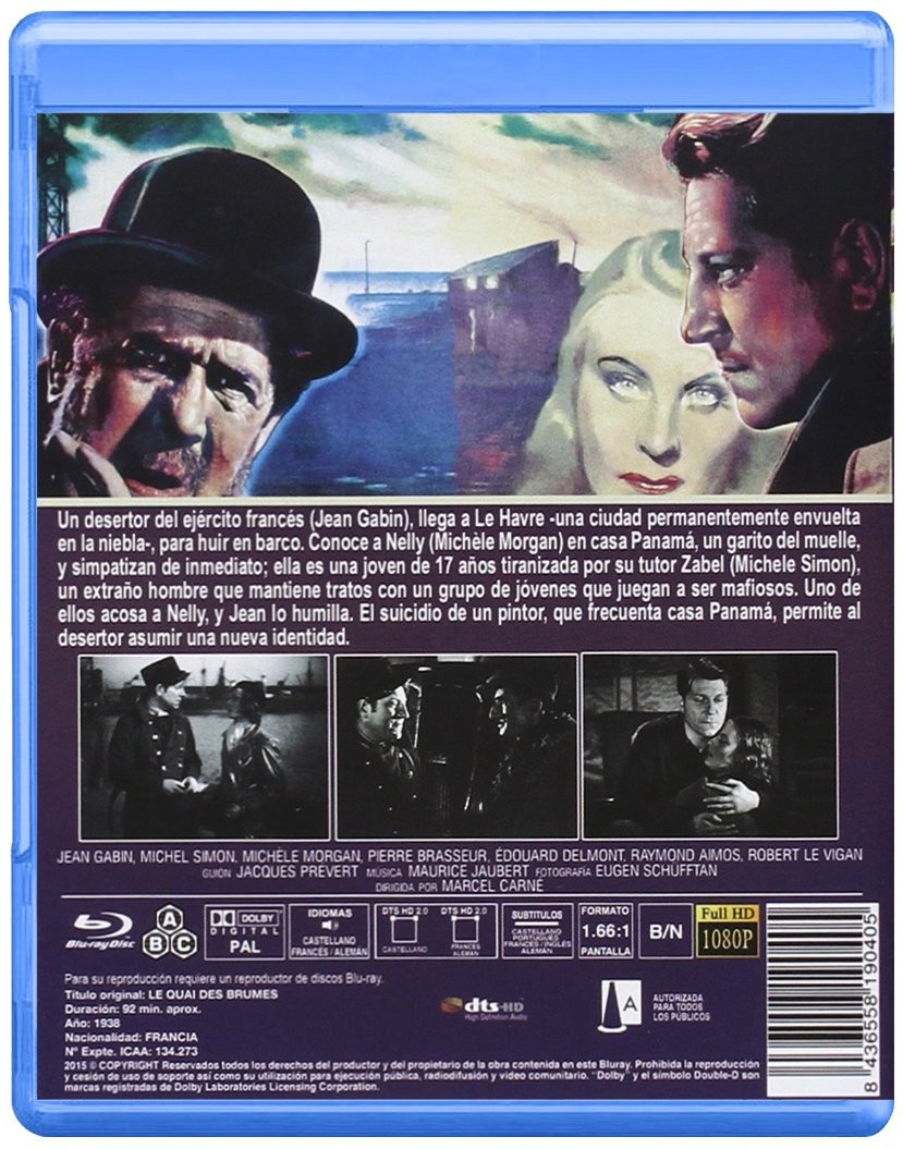 https://dvdstorespain.es/en/films/16370-le-quai-des-brumes-bluray--8436558190405.html16370Le Quai Des Brumes [BLU_RAY]<div><br />A deserter from the French army (Jean Gabin) arrives in Le Havre - a city permanently shrouded in fog - to flee by boat. He meets Nelly (Michèle Morgan) at Casa Panamá, a dive on the dock, and they hit it off immediately; She is a 17-year-old girl tyrannized by her tutor Zabel (Michele Simon), a strange man who has dealings with a group of young people who play at being gangsters. One of them harasses Nelly, and Jean humiliates him. The suicide of a painter, who frequents Casa Panamá, allows the deserter to assume a new identity.</div>https://dvdstorespain.es/540726-home_default/le-quai-des-brumes-bluray-.jpg6.5289instockResearch Entertainment6.52896.5289002015-06-14T22:06:03+0200/Start/Start/Blu-Ray/Start/Films/Start/New/Start/EVENING SP 70/Start/VELADA DE 80/Start/VELADA FR 80/Start/VELADA IT 80Marcel CarneJean GabinMichael Simon