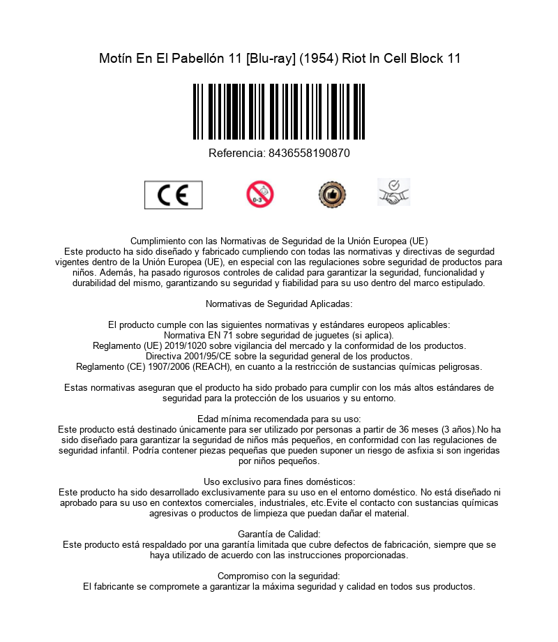 https://dvdstorespain.es/en/films/17572-riot-in-cell-block-11-bluray--8436558190870.html17572Motín En El Pabellón 11 [Blu-ray] (1954) Riot In Cell Block 11Tras salir de prisión, donde cumplió una condena por haber disparado contra un presunto amante de su esposa, el productor Walter Wanger se propuso hacer una película sobre su experiencia carcelaria. Un grupo de presidiarios se amotinan y se les une la mayoría de los presos, que toman como rehenes a numerosos guardia. Su intención es protestar contra las infrahumanas condiciones de vida que tienen que soportar. https://dvdstorespain.es/538434-home_default/riot-in-cell-block-11-bluray-.jpg6.1364instockResen6.13646.1364002015-07-19T18:41:11+0200/Start/Start/Blu-Ray/Start/Films/Start/New/Start/EVENING SP 70/Start/VELADA DE 80/Start/VELADA FR 80/Start/VELADA IT 80Robert OsterlohNeville BrandEmile MeyerDon SiegelFrank FaylenAlvy Moorewhit bissellLeo GordonDabbs Greer