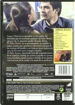 https://dvdstorespain.es/en/films/27350-the-crime-of-father-amaro-dvd--8414533019361.html27350El crimen del Padre Amaro [DVD]<div id="productdescription" class="a-section a-spacing-small"> <!-- show up to 2 reviews by default --><br /><p> <span>amaro viera, sacerdote recién salido del seminario, es nombrado asistente del padre benito, párroco de un pequeño pueblo llamado reyes. el padre benito no es precisamente un modelo a seguir, puesto que mantiene relaiones con una mujer de las mujeres del pueblo y no duda en hacer tratos con narcotraficantes para conseguir dinero para su iglesia. el padre amaro intentando huir del comportamiento de su superior tendrá que poner a prueba su carrera como sacerdote cuando conoce a amelia, la muchacha más hermosa de la ciudad y la causa de su perdición.</span> </p> </div>https://dvdstorespain.es/746527-home_default/the-crime-of-father-amaro-dvd-.jpg9.9174instock9.91749.9174002016-04-27T22:56:59+0200/Start/Start/Films/Start/New
