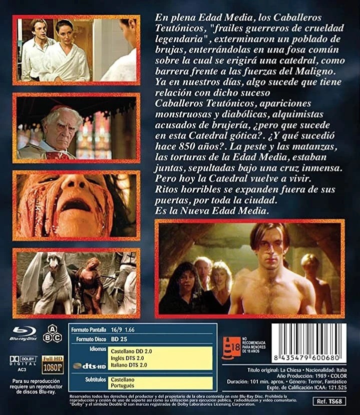 https://dvdstorespain.es/en/films/36900-la-chiesa-bluray--8435479600680.html36900El Engendro del Díablo [Blu-ray] (1989) La ChiesaEn plena Edad Media, los Caballeros Teutónicos "frailes guerreros de crueldad legendaria", exterminaron un poblado de brujas, enterrándolas en una fosa común sobre la cual se erigirá una catedral, como barrera frente a las fuerzas del Maligno. Ya en nuestros días, algo sucede que tiene relación con dicho suceso Caballeros Teutónicos, apariciones monstruosas y diabólicoas, alquimistas acusados de brujería, pero ¿qué sucede en esta Catedral gótica ¿Y qué sucedió hace 850 años La peste y las matanzas, las torturas de la Edad Media, estaban juntas, sepultadas bajo una cruz inmensa. Pero hoy la catedral vuelve a vivir. Ritos horribles se expanden fuera de sus puertas, por toda la ciudad. Es la nueva Edad Media.https://dvdstorespain.es/516944-home_default/la-chiesa-bluray-.jpg5.3554instockVértice Cine8.92565.355439.9995518508563.57022017-10-10T19:40:09+0200/Start/Start/Blu-Ray/Start/Films/Start/New/Start/18 YEARS YES D&O/Start/ HALLOWEEN SALES/Start/ HALLOWEEN SALES/-40%