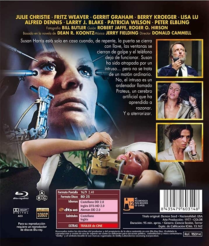 https://dvdstorespain.es/en/films/47574-demon-seed-bluray--8435479603148.html47574Engendro Mecánico [Blu-ray] (1977) Demon SeedSusan Harris está sola en casa cuando, de repente, la puerta se cierra con llave, las ventanas se cierran de golpe y el teléfono deja de funcionar. Susan ha sido atrapada por un intruso… pero no se trata de un matón ordinario. No, el intruso es un ordenador llamado Proteus, un cerebro artificial que ha aprendido a razonar. Y a aterrorizarhttps://dvdstorespain.es/485027-home_default/demon-seed-bluray-.jpg5.9504instockResearch Entertainment5.95045.9504002019-01-30T15:48:28+0100/Start/Start/Blu-Ray/Start/Films/Start/New/Start/EVENING SP 70/Start/VELADA DE 80/Start/VELADA FR 80/Start/VELADA IT 80