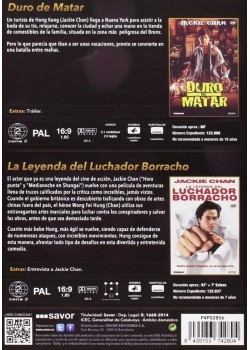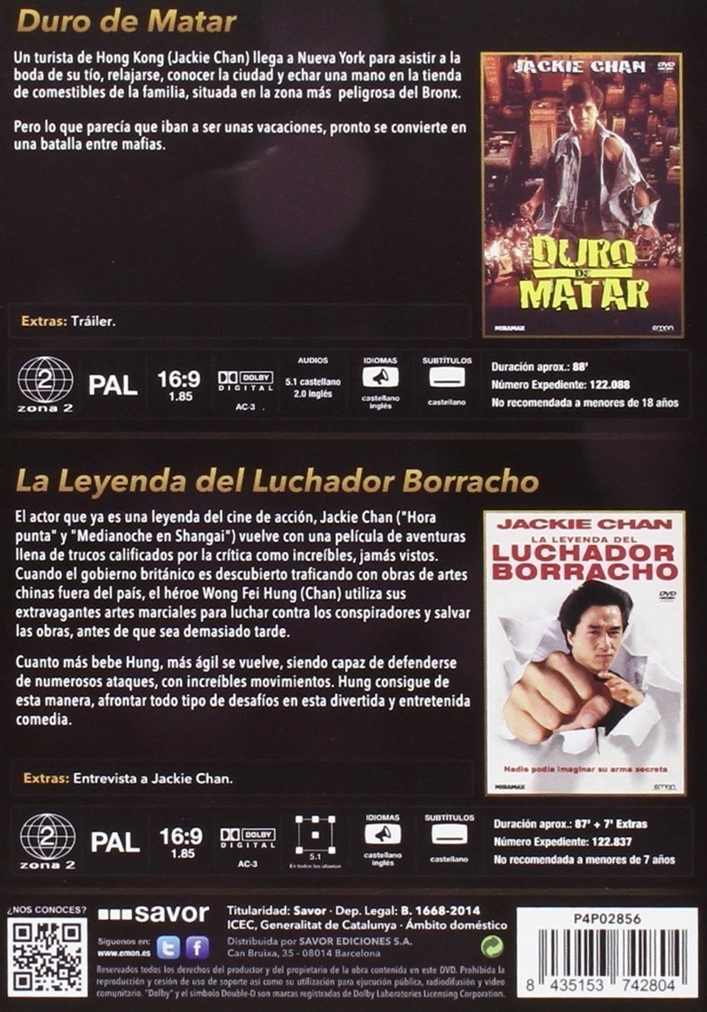 https://dvdstorespain.es/en/films/52582-pack-jackie-chan-duro-de-matar-la-leyenda-del-luchador-borracho-dvd--8435153742804.html52582Duro De Matar + La Leyenda Del Luchador Borracho [DVD] (1995,1994) Honfgan Qu + Jui kuen IIKeong (Jackie Chan), un policía de Hong Kong, viaja a Nueva York para asistir a la boda de su tío, pero durante su estancia en el Bronx se verá envuelto en una lucha de bandas callejeras.,Cuando el gobierno británico es descubierto traficando con obras de arte chinas fuera del país, el héroe Wong Fei Hung (Chan) utiliza sus extravagantes artes marciales para luchar contra los conspiradores y salvar las obras, antes de que sea demasiado tarde. Cuanto más bebe Hung, más ágil se vuelve, siendo capaz de defenderse de numerosos ataques, con increíbles movimientos. Hung consigue, de esta manera, afrontar todo tipo de desafíos. https://dvdstorespain.es/675489-home_default/pack-jackie-chan-duro-de-matar-la-leyenda-del-luchador-borracho-dvd-.jpg9.9174instock9.91749.9174002019-10-16T17:22:17+0200/Start/Start/DVD/Start/Films/Start/New