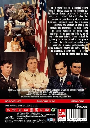 https://dvdstorespain.es/en/films/52766-la-pelle-dvd--8421394554030.html52766La Piel [DVD] (1981) La pelleEn 1943, Nápoles acaba de ser liberada por las tropas americanas. Un mafioso local negocia un intercambio de prisioneros alemanes con el general Mark Cork (Burt Lancaster). El intermediario es un capitán italiano, Curzio Malaparte (Marcello Mastroianni).https://dvdstorespain.es/464877-home_default/la-pelle-dvd-.jpg7.3554instockDivisa Home Video7.35547.3554002019-10-23T18:00:12+0200/Start/Start/DVD/Start/Films/Start/New/Start/Homenaje a Claudia Cardinale