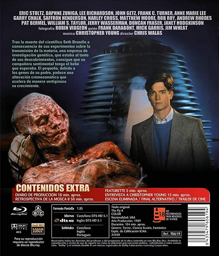 https://dvdstorespain.es/en/films/86680-the-fly-ii-bluray--8435479606194.html86680La Mosca II [Blu-ray] (1989) The Fly IiTras la muerte del científico Seth Brundle a consecuencia de sus experimentos sobre la transmisión de la materia, una empresa de investigación genética, que estaba al tanto de sus descubrimientos, consigue que su compañera sentimental tenga el bebé que esperaba. El pequeño, debido a los genes de su padre, padece una alteración cromosomática que acelera de manera vertiginosa su crecimiento.https://dvdstorespain.es/438601-home_default/the-fly-ii-bluray-.jpg5.5711instockResearch Entertainment7.95875.571129.9998743513392.38762020-10-21T00:35:57+0200/Start/Start/Blu-Ray/Start/Films/Start/New/Start/18 YEARS YES D&O/Start/ HALLOWEEN SALES/Start/ HALLOWEEN SALES/-30%
