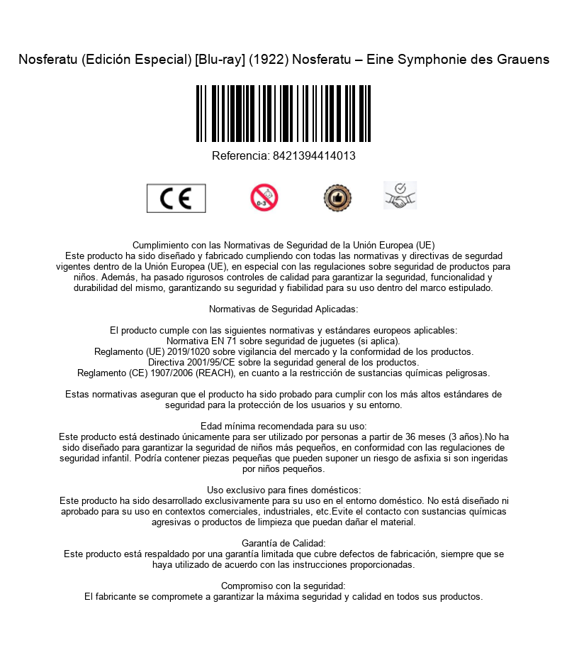 https://dvdstorespain.es/en/films/86811-nosferatu-eine-symphonie-des-grauens-bluray--8421394414013.html86811Nosferatu (Edición Especial) [Blu-ray] (1922) Nosferatu – Eine Symphonie des GrauensAño 1838. En la ciudad de Wisborg viven felices el joven Hutter y su mujer Ellen, hasta que el oscuro agente inmobiliario Knock decide enviar a Hutter a Transilvania para cerrar un negocio con el conde Orlok. Se trata de la venta de una finca de Wisborg, que linda con la casa de Hutter. Durante el largo viaje, Hutter pernocta en una posada, donde ojea un viejo tratado sobre vampiros que encuentra en su habitación. Una vez en el castillo, es recibido por el siniestro conde. Al día siguiente, Hutter amanece con dos pequeñas marcas en el cuello, que interpreta como picaduras de mosquito. Una vez firmado el contrato, descubre que el conde es, en realidad, un vampiro. Al verle partir hacia su nuevo hogar, Hutter teme por Ellen.https://dvdstorespain.es/568564-home_default/nosferatu-eine-symphonie-des-grauens-bluray-.jpg15.7025instockDivisa Home Video15.702515.7025002020-11-04T00:40:18+0100/Start/Start/Blu-Ray/Start/Films/Start/New/Start/EVENING SP 70/Start/VELADA DE 80/Start/VELADA FR 80/Start/VELADA IT 80