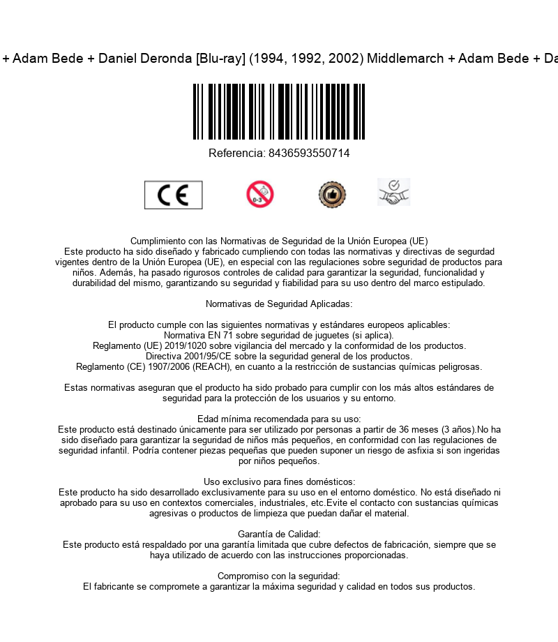 https://dvdstorespain.es/en/films/87482-george-eliot-blu-ray--8436593550714.html87482Middlemarch + Adam Bede + Daniel Derondaminiserie [Blu-ray] (1994#1992#2002) Middlemarch + Adam Bede + Daniel Deronda<p>Middlemarch Miniserie de TV de 7 episodios. "Hacer una modesta labor para Middlemarch y una gran labor para todo el mundo". Esta es la intención del joven y ambicioso Doctor Lydgate al asumir su puesto de trabajo en el nuevo hospital de Middlemarch, una pequeña población inglesa. En otro lugar del pueblo, Dorotea Brooke, en busca de un objetivo para su tierna vida, se encuentra a sí misma atraída hacia Edward Casaubon, hombre mayor pero gran erudito. En poco tiempo ambos encuentran su preciado idealismo puesto a prueba debido a las exigencias del matrimonio y de la sociedad... Adam Bede Adam Bede, dirigida por Giles Foster en 1992, es una adaptación del clásico literario de George Eliot. La película se ambienta en la Inglaterra rural del siglo XIX y sigue la vida de Adam Bede, un carpintero honrado pero de corazón roto, que se encuentra en un triángulo amoroso con la hermosa pero frívola Hetty Sorrel y la devota Dinah Morris. La historia explora temas de amor, traición y redención. Daniel DerondaMiniserie Miniserie de 3 episodios. Adaptación de la gran novela de George Elliot. A pesar de que sus recursos son escasos, la hermosa y arrogante Gwendolyn Hartleth es una jugadora compulsiva. Por esta razón, decide casarse con Grandcourt, un frío aristócrata del que sabe que ya tiene amante e hijos. Daniel Deronda, el brillante joven adoptado por Sir Hugo Mallinger, se enamora de Gwendolyn e intenta rescatarla.</p>https://dvdstorespain.es/433926-home_default/george-eliot-blu-ray-.jpg23.8843instockMapetac23.884323.8843002021-01-06T00:12:22+0100/Start/Start/Blu-Ray/Start/Films/Start/New/Start/EVENING SP 20/Start/VELADA DE 20/Start/VELADA FR 20/Start/velada IT 20