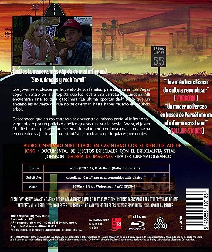 https://dvdstorespain.es/en/films/88068-highway-to-hell-bluray--8436558197183.html88068Autopista Al Infierno [Blu-ray] (1991) Highway To HellExtras: trailer, audiocomentario del director, entrevista al encargado de efectos especiales Steven Johnson, galería de imágenes. Una pareja de recién casados (Lowe y Swanson) tienen dificultades durante su luna de miel, cuando la novia es secuestrada por Poli-infierno (Graham) quien la lleva a conocer las profundidades del Averno.https://dvdstorespain.es/429558-home_default/highway-to-hell-bluray-.jpg5.5711instockResearch Entertainment7.95875.571129.9998743513392.38762021-03-12T00:13:54+0100/Start/Start/Blu-Ray/Start/Films/Start/New/Start/18 YEARS YES D&O/Start/ HALLOWEEN SALES/Start/ HALLOWEEN SALES/-30%