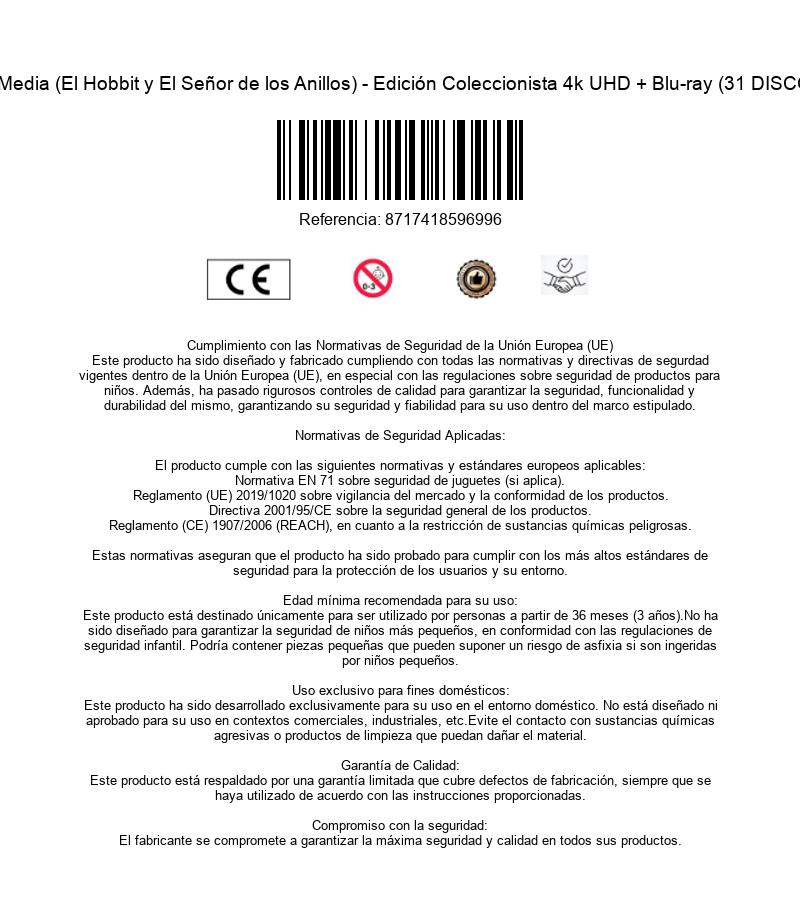 https://dvdstorespain.es/en/films/90703-pack-tierra-media-el-hobbit-y-el-senor-de-los-anillos-edicion-coleccionista-4k-uhd-blu-ray-31-discos-blu-ray--8717418596996.html90703Pack Tierra Media (El Hobbit y El Señor de los Anillos) - Edición Coleccionista 4k UHD + Blu-ray (31 DISCOS) [Blu-ray]<div id="productDescription" class="a-section a-spacing-small"><br /><h3><span>Product description</span></h3><p></p><p> <span>CONTAINS: 31 DISCS THAT INCLUDE LA CINEMATOGRAPHIC AND EXTENDED VERSION OF THE 6 FILMS WITH COMMENTARY BY THE FILMMAKERS ON BLU-RAYEL HOBBIT LA TRILOGY: AN UNEXPECTED JOURNEY; LA DESOLATION OF SMAUG; LA BATTLE OF THE FIVE ARMIES THE LORD OF THE RINGS LA TRILOGY: LA FELLOWSHIP OF THE RING; THE TWO TOWERS; THE RETURN OF THE KING - EXCLUSIVE BONUS CONTENT DISC ON BLU-RAY, INCLUDES: ALAMO DRAFTHOUSE THE LORD OF THE RINGS™ ACTOR MEETINGS In honor of the 20th anniversary of The Lord of the Rings Trilogy, Alamo Drafthouse brings together the best of Middle Earth™in three special conversations hosted by Stephen Colbert.CANNES FESTIVAL PRESENTATION REEL-7 ART POSTCARDS-64-PAGE BOOKLET OF COSTUME SKETCHES, PHOTOGRAPHS AND PRODUCTION NOTES</span></p><h3> <span>Synopsis</span></h3><p> <span><br />THE HOBBIT TRILOGY - An Unexpected Journey - The Desolation of Smaug - The Battle of the Five Armies<br /><br /> THE LORD OF THE RINGS TRILOGY - The Fellowship of the Ring - The Two Towers - The Return of the King</span></p></div>https://dvdstorespain.es/402295-home_default/pack-tierra-media-el-hobbit-y-el-senor-de-los-anillos-edicion-coleccionista-4k-uhd-blu-ray-31-discos-blu-ray-.jpg239.6694instockWarner Bros. Entertainment239.6694239.6694002021-10-18T01:02:07+0200/Start/Start/Films/Start/New/Start/4K-UHD/Start/RECOMMENDED/Start/EVENING SP 70/Start/VELADA DE 60/Start/VELADA FR 60/Start/VELADA IT 60