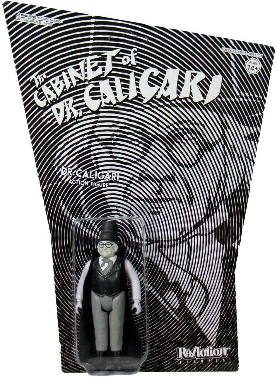 Super7 y ReAction Figures han creado esta pequeña maravilla, la figura coleccionable del Dr. Caligari que daba título a la película clave del expresionismo alemán. Este Doctor de 10 cms hecho de PVC viene pintado en tonos grises para respetar la apariencia del personaje en la película de blanco y negro del año 1920. El blíster en el que viene es una pieza coleccionable en si misma, con un patrón de líneas en blanco y negro y con el título de la película en tipografía retro. La figura tiene varias articulaciones para adoptar distintas posiciones. Una maravilla de regalo para ese coleccionista cinéfilo que conoces o que llevas dentro.
