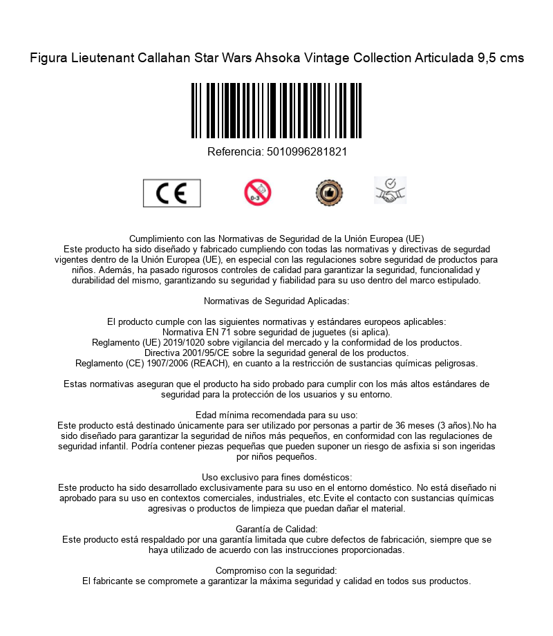 La figura Lieutenant Callahan Star Wars Ahsoka Vintage Collection articulada de 9,5 cm es perfecta para los fans que quieren llevar la acción de la serie directamente a su estantería. Con un diseño cuidado al detalle y un nivel de articulación que permite posar al personaje en un montón de posturas dinámicas, esta pieza es ideal tanto para coleccionistas como para quienes disfrutan recreando escenas galácticas. Lieutenant Callahan viene equipado con un casco removible y un bláster láser, imprescindibles para lanzarse a la batalla y mantener el orden en la galaxia. Además, su estilo inspirado en la línea clásica Vintage Collection hace que combine nostalgia y modernidad en una misma figura. Ya sea para exponerla junto a otros personajes de la colección o para recrear combates y misiones llenas de acción, esta figura es una opción divertida y llena de carácter que no puede faltar en tu colección de Star Wars.