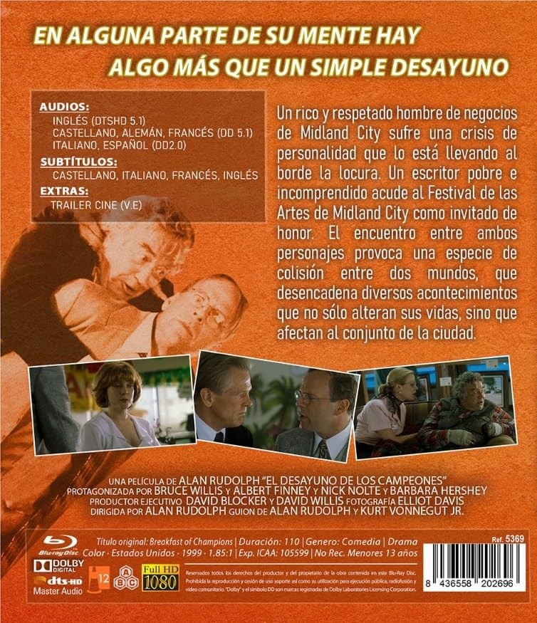 https://dvdstorespain.es/en/presale/126972-el-desayuno-de-los-campeones-blu-ray-1999-breakfast-of-champions-blu-ray--8436558202696.html126972El Desayuno De Los Campeones [Blu-ray] (1999) Breakfast of ChampionsUn rico y respetado hombre de negocios de Midland City sufre una crisis de personalidad que lo está llevando al borde la locura. Un escritor pobre e incomprendido acude al Festival de las Artes de Midland City como invitado de honor. El encuentro entre ambos personajes provoca una especie de colisión entre dos mundos, que desencadena diversos acontecimientos que no sólo alteran sus vidas, sino que afectan al conjunto de la ciudad.https://dvdstorespain.es/1084677-home_default/el-desayuno-de-los-campeones-blu-ray-1999-breakfast-of-champions-blu-ray-.jpg10.7025instockResearch10.702510.7025002025-10-02T05:31:13+0200/Start/Start/Blu-Ray/Start/Films/Start/Presale