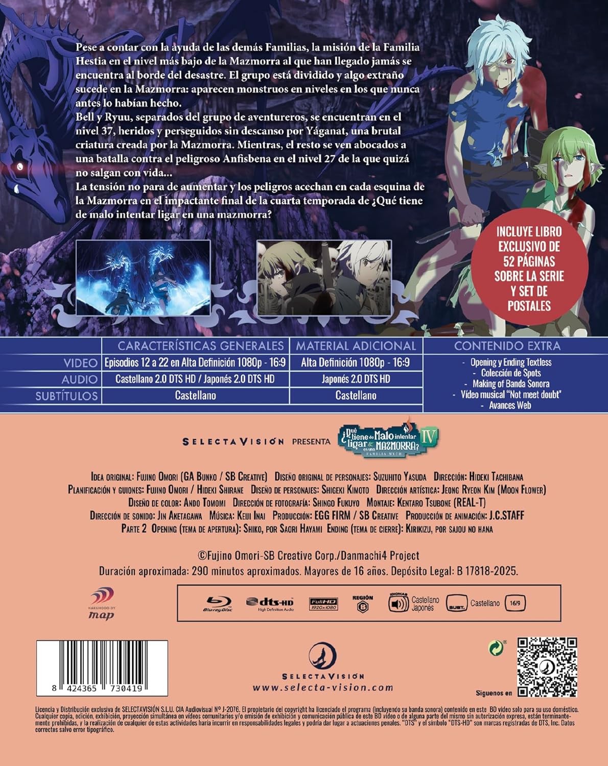 https://dvdstorespain.es/en/presale/127113-danmachi-temporada-4-que-tiene-de-malo-intentar-ligar-en-una-mazmorra-temporada-4-parte-2-episodios-12-a-22-blu-ray-bl-8424365730419.html127113Danmachi (Temporada 4, parte 2, ¿Qué tiene de malo intentar ligar en una mazmorra? Episodios 12 a 22, 2 discos) [Blu-ray] (2015Serie de TV (2015 - 2025). 5 temporadas. 59 episodios. La acción de Dungeon ni Deai wo Motomeru no wa Machigatteiru Darou ka? tiene lugar en Orario, una laberíntica ciudad también conocida como “Mazmorra”. Bell Cranell es un aventurero inexperto al que le encantaría "tener un encuentro trascendental con una persona del sexo opuesto".https://dvdstorespain.es/1086325-home_default/danmachi-temporada-4-que-tiene-de-malo-intentar-ligar-en-una-mazmorra-temporada-4-parte-2-episodios-12-a-22-blu-ray-bl.jpg31.405instockSELECTA VISION31.40531.405002025-10-07T03:46:51+0200/Start/Start/Blu-Ray/Start/Films/Start/Presale