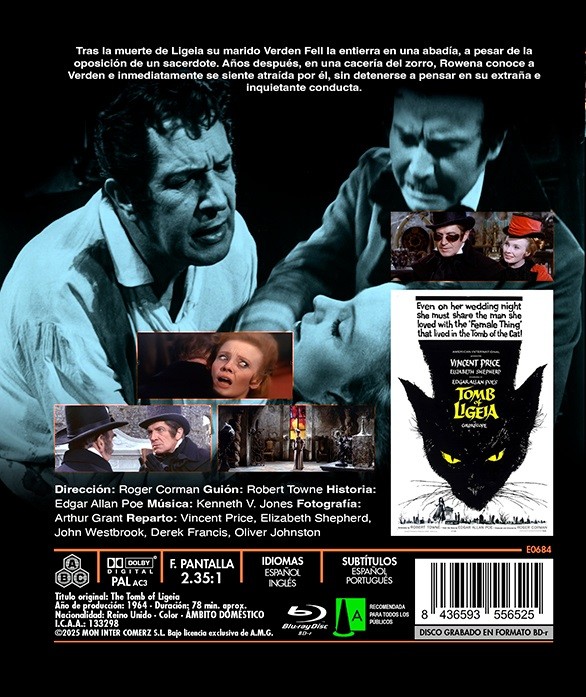 https://dvdstorespain.es/en/presale/127280-la-tumba-de-ligeia-bdr-the-tomb-of-ligeia-blu-ray-2025--8436593556525.html127280La Tumba De Ligeia [Blu-ray R] (1964) The Tomb of LigeiaTras la muerte de Ligeia (Elizabeh Shepherd) su marido Verden Fell (Vincent Price) la entierra en una abadía, a pesar de la oposición de un sacerdote. Años después, en una cacería del zorro, la pelirroja Rowena (Shepherd) conoce a Verden e inmediatamente se siente atraída por él, sin detenerse a pensar en su extraña e inquietante conducta.https://dvdstorespain.es/1089748-home_default/la-tumba-de-ligeia-bdr-the-tomb-of-ligeia-blu-ray-2025-.jpg10.7025instockMon Inter10.702510.7025002025-10-15T03:16:01+0200/Start/Start/Blu-Ray/Start/Films/Start/Presale