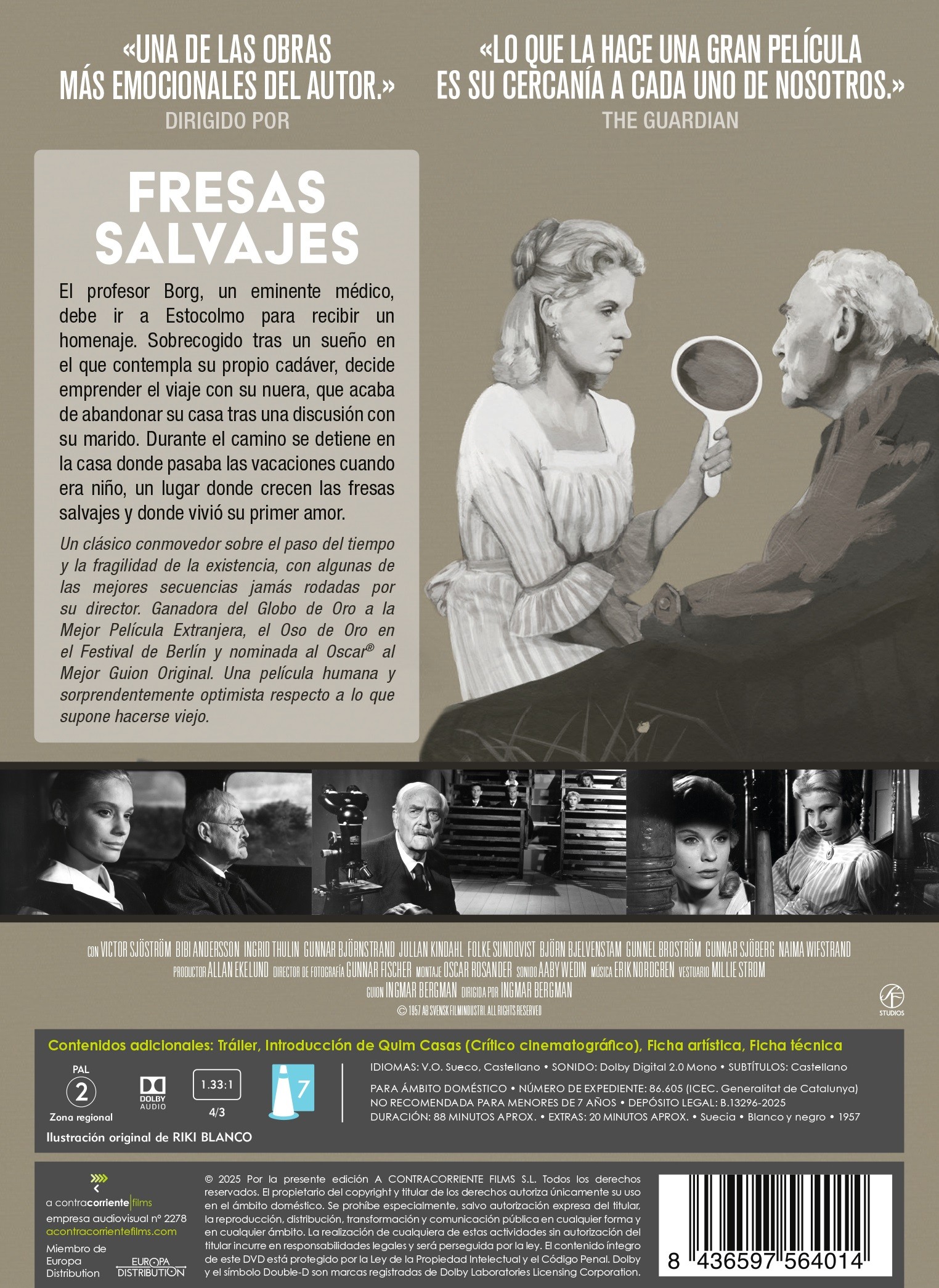 https://dvdstorespain.es/en/presale/127687-fresas-salvajes-dvd-2025--8436597564014.html127687Fresas Salvajes [DVD] (1957) SmultronställetEl profesor Borg, un eminente médico, debe ir a la ciudad de Lund para recibir un homenaje de su universidad. Sobrecogido, tras un sueño en el que contempla su propio cadáver, decide emprender el viaje en coche con su nuera, que acaba de abandonar su casa, tras una discusión con su marido, que se niega a tener hijos. Durante el viaje se detiene en la casa donde pasaba las vacaciones cuando era niño, un lugar donde crecen las fresas salvajes y donde vivió su primer amor.https://dvdstorespain.es/1100491-home_default/fresas-salvajes-dvd-2025-.jpg12.3141instockA Contracorriente Films, S.L.12.314112.3141002025-11-04T13:15:31+0100/Start/Start/DVD/Start/Films/Start/Presale
