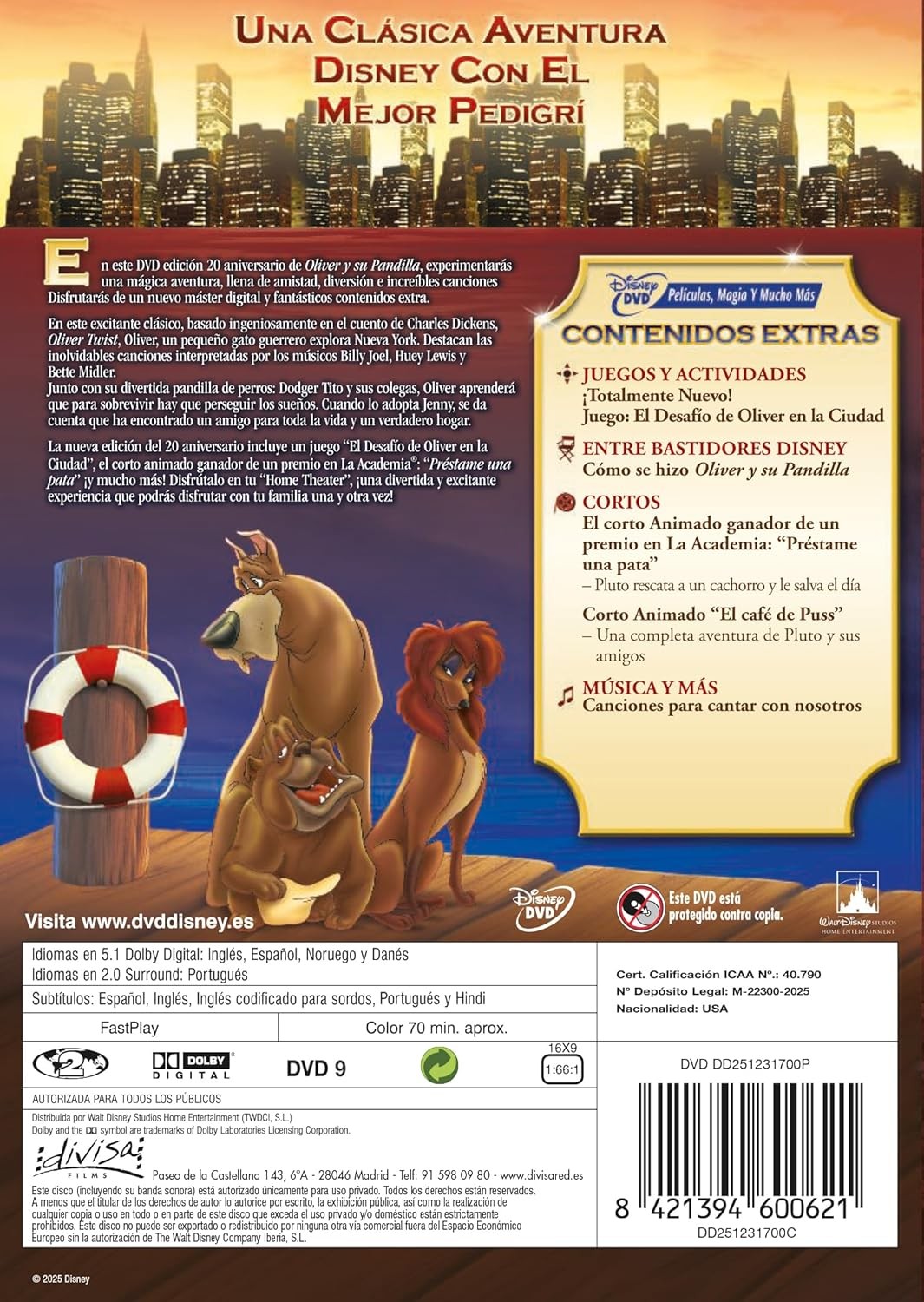 https://dvdstorespain.es/en/presale/127850-oliver-y-su-pandilla-oliver-company-1988-dvd-dvd-2025--8421394600621.html127850Oliver Y Su Pandilla [DVD] (1988) Oliver & CompanyUn gatito huérfano llamado Oliver se une a Fagin y a su banda de ladronzuelos con Dodger, un maestro moviéndose por la ciudad, y el simpático Chiguagua Tito. Un buen día, el pequeño Oliver deja las calles al ser adoptado por Jenny, una niña rica que se lo lleva a su casa, donde vivirá con todas las comodidades. Pero cuando Jenny es secuestrada por el malvado jefe de Fagin y su terrorífico Doberman, Oliver comprobará el valor de la verdadera amistad al ver cómo toda la banda se pone en marcha para rescatarla. Adaptación animada y muy libre de "Oliver Twist", de Charles Dickens. https://dvdstorespain.es/1100000-home_default/oliver-y-su-pandilla-oliver-company-1988-dvd-dvd-2025-.jpg8.2231instockDivisa HV - Disney8.22318.2231002025-11-12T09:46:07+0100/Start/Start/DVD/Start/Films/Start/Presale
