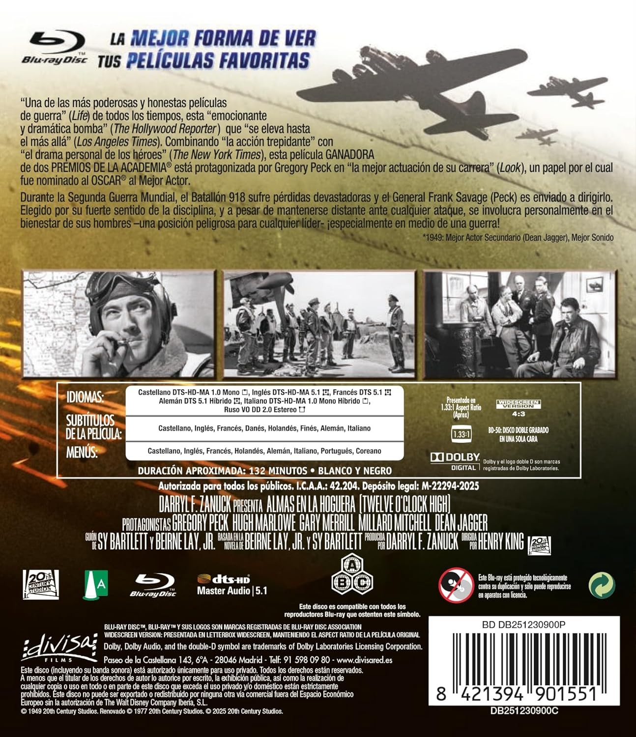 https://dvdstorespain.es/en/presale/127863-almas-en-la-hoguera-twelve-o-clock-high-1949-blu-ray-blu-ray-2025--8421394901551.html127863Almas En La Hoguera [Blu-ray] (1949) Twelve O'Clock HighDurante la Segunda Guerra Mundial (1939-1945), el general Frank Savage, de las fuerzas aéreas de los Estados Unidos, es enviado a Inglaterra para relevar al comandante de una unidad encargada de bombardear Alemania y cuyos miembros están completamente desmoralizados. Aunque es amable y comprensivo, Savage aplica inmediatamente una disciplina de choque para levantar la moral de la tropa. Los miembros del escuadrón, reacios al principio a aceptar las nuevas normas, van cambiando a medida que consiguen victorias inesperadas. Sin embargo, la tensión y el agotamiento que supone el mando conducirá al general a una situación límite. https://dvdstorespain.es/1100043-home_default/almas-en-la-hoguera-twelve-o-clock-high-1949-blu-ray-blu-ray-2025-.jpg11.9835instockDivisa HV - Disney11.983511.9835002025-11-12T09:48:21+0100/Start/Start/Blu-Ray/Start/Films/Start/Presale