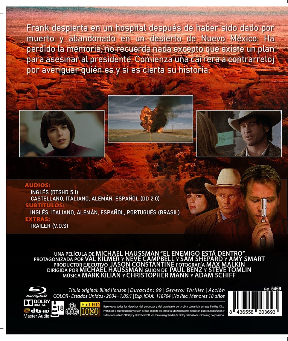 https://dvdstorespain.es/en/presale/128140-el-enemigo-esta-dentro-blu-ray-2004-blind-horizon-blu-ray-2026--8436558203693.html128140El Enemigo está Dentro [Blu-ray] (2004) Blind HorizonUn hombre se despierta en el hospital de un pueblo cercano al desierto de Nuevo México. No recuerda nada, pero sospecha que ha sido víctima de una encerrona. Con la ayuda de su mujer, el sheriff local y una enfermera, intentará reconstruir su pasado más reciente. https://dvdstorespain.es/1105863-home_default/el-enemigo-esta-dentro-blu-ray-2004-blind-horizon-blu-ray-2026-.jpg10.7025instockResearch10.702510.7025002025-11-29T01:11:03+0100/Start/Start/Blu-Ray/Start/Films/Start/Presale