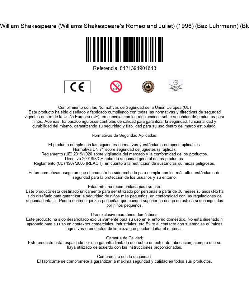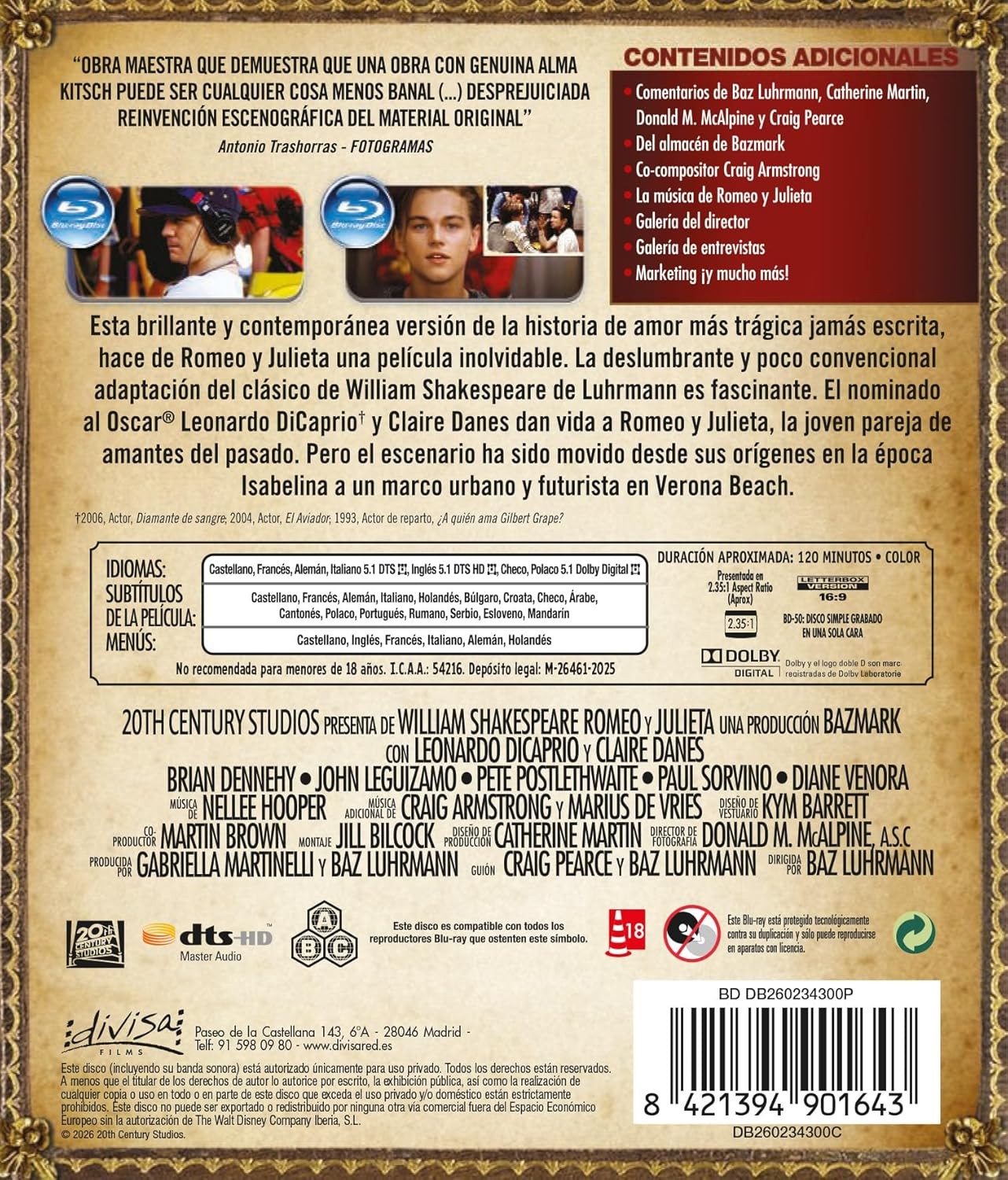 https://dvdstorespain.es/en/presale/128506-romeo-julieta-de-william-shakespeare-williams-shakespeare-s-romeo-and-juliet-1996-baz-luhrmann-blu-ray-blu-ray-2026-8421394901643.html128506Romeo + Julieta de William Shakespeare [Blu-ray] (1996) Williams Shakespeare's Romeo and JulietEn Verona Beach se suceden los enfrentamientos entre las dos familias más poderosas (los Montesco y los Capuleto), cuyo objetivo es conseguir el dominio de la ciudad. Fulgencio Capuleto organiza una fiesta a la que asiste, gracias a la mediación de su amigo Mercuccio, Romeo Montesco. Lo que los Capuleto pretenden es que su joven hija Julieta se comprometa con el arrogante Dave Paris, el hijo del gobernador. Pero, cuando Romeo y Julieta se miran, surgirá entre ellos desde el primer momento la chispa del amor. Adaptación moderna del clásico de Shakespeare. https://dvdstorespain.es/1113630-home_default/romeo-julieta-de-william-shakespeare-williams-shakespeare-s-romeo-and-juliet-1996-baz-luhrmann-blu-ray-blu-ray-2026.jpg11.9835instock11.983511.9835002025-12-24T01:46:46+0100/Start/Start/Blu-Ray/Start/Films/Start/Presale