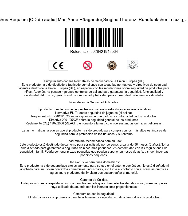 https://dvdstorespain.es/en/second-hand/106723-brahms-ein-deutsches-requiem-cd-de-audio-mari-anne-haggandersiegfried-lorenz-rundfunkchor-leipzig-jorg-peter-weigle-ru-5028421943534.html106723BRAHMS: Ein deutsches Requiem [CD de audio] Mari Anne Häagander,Siegfried Lorenz, Rundfunkchor Leipzig, Jörg-Peter Weigle, Ru<div id="productDescription" class="a-section a-spacing-small"><br /><p><span>Viel zu lange war es eine Lücke im Brilliant Classics Katalog und sind nun glücklich eine hervorragende Aufnahme des heiligen Meisterwerk Brahms zu präsentieren. Ein deutsches Requiem! Brahms Requiem, in Deutsch geschrieben, präsentieren Bibeltexte die, er selbst auswählte und nach dem Tod seiner Mutter, was eine sehr erschütternde Erfahrung für ihn war, componierte. Die dunkle Seite des Todes wird in der Musik durch große Zärtlichkeit und Intimität erleichtert. Dirigiert von dem large German Conductor, Herbert Kegel mit hervorragenden Solisten, wie Mari-Anne Häggander und Siegfried Lorenz und dem erstklassigen Rundfunkchor / Sinfonie-Orchester Leipzig.</span></p></div><div id="lista_canciones"><h4> List of topics </h4><div id="music-tracks" class="a-section a-spacing-small"><div class="a-row"><div class="a-column a-span3"><table class="a-bordered a-spacing-none"><tr><td> 1</td><td> Selig Sind, Die Da Leid Tragen</td></tr><tr><td> 2</td><td> Denn Alles Fleisch, It's Wie Gras</td></tr><tr><td> 3</td><td> Herr, Lehre Doch Mich</td></tr><tr><td> 4</td><td> Wie Lieblich Sind Deine Wohnungen</td></tr><tr><td> 5</td><td> Ihr Habt Nun Traurigkeit</td></tr><tr><td> 6</td><td> Denn Wir Haben Hie Keine Bleibende Statt</td></tr><tr><td> 7</td><td> Selig Sind Die Toten, Die In Dem Herren Sterben</td></tr></table></div></div></div></div>https://dvdstorespain.es/612937-home_default/brahms-ein-deutsches-requiem-cd-de-audio-mari-anne-haggandersiegfried-lorenz-rundfunkchor-leipzig-jorg-peter-weigle-ru.jpg14.1322instockBrilliant Classics14.132214.1322002023-04-01T02:04:14+0200/Music/Second hand/CD Audio