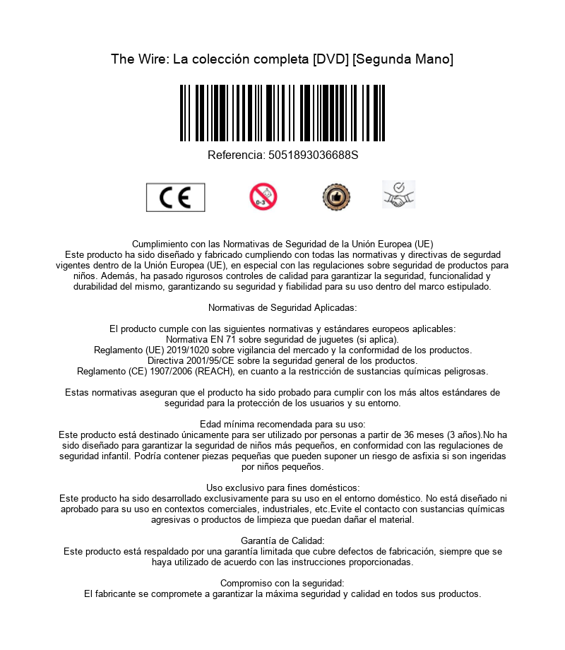 https://dvdstorespain.es/en/second-hand/128641-the-wire-dvd--5051893036688.html128641copy of The Wire [DVD]<div><br />This DVD pack brings together all 5 seasons of the series. The first 5 discs are dedicated to the entire first season, which focuses on the conflict with drug dealers in Baltimore. From the sixth album to the tenth the second season comes together, with smuggling as the main element. The third season is compiled from disc 11 to 15, focusing its attention on politics. Discs 16 to 20 offer the fourth season, with the region's educational system, and the rest of discs, 21 to 24, focus the press on the fifth season of the series.</div>https://dvdstorespain.es/1116100-home_default/the-wire-dvd-.jpg25.124instockWarner Bros. Ent. España, S.L.25.12425.124002025-12-30T01:59:29+0100/Start/Start/DVD/Start/TV series/Start/Second hand/Start/New/Start/RECOMMENDED/Start/EVENING SP 40/Start/VELADA DE 40/Start/VELADA FR 40/Start/VELADA IT 40