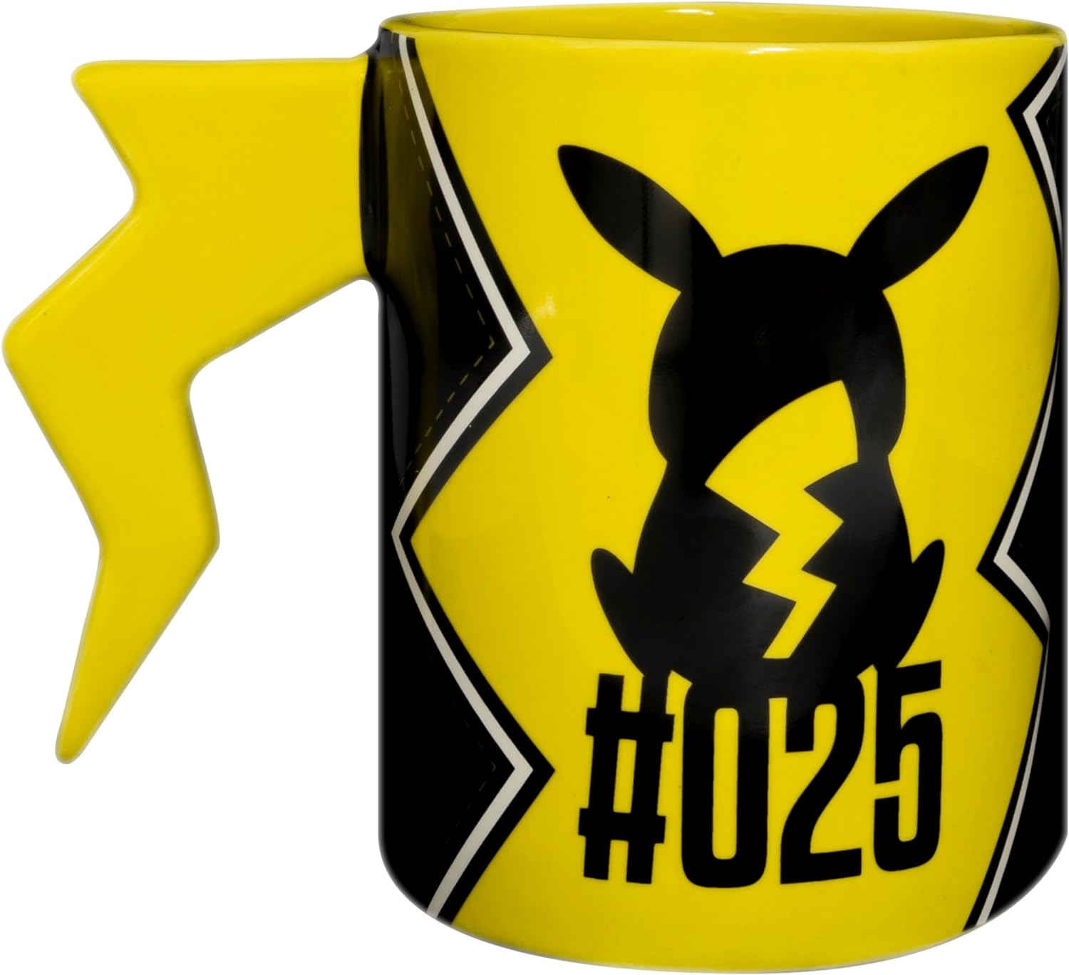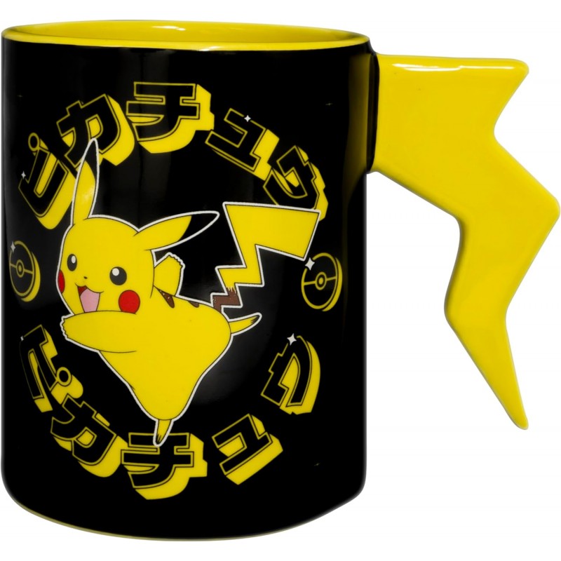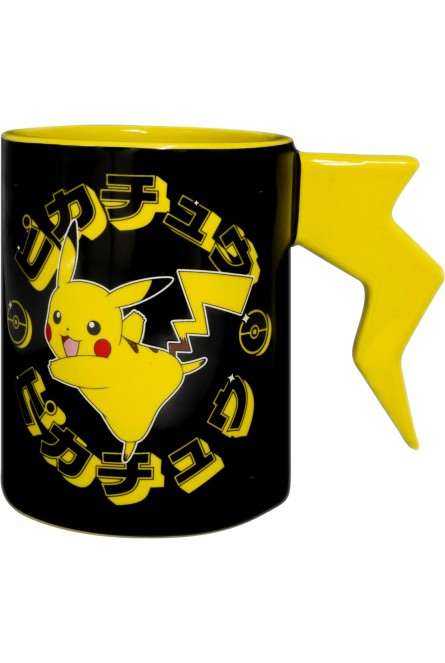 Si tenías envidia de que el Pokémon que acompañaba a Ash Ketchum fuera el adorable Pikachu, ahora podrás estar un pasito más cerca del simpático ratón de tipo eléctrico con esta espectacular taza de asa 3D que tiene la forma de un rayo como los que lanza Pikachu. Está hecha de cerámica de gran calidad, tiene licencia oficial, y tiene una capacidad de unos 500 mls. ¡Impresionante! No es apta para lavavajillas ni microondas. El interior es de color amarillo y en el exterior hay unas divertidas ilustraciones de Pikachu y de sus iconos característicos.