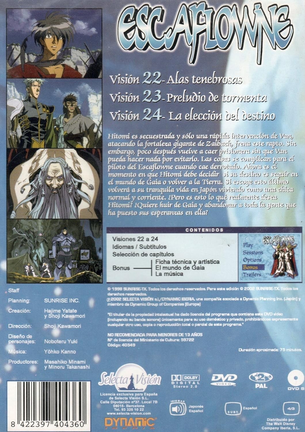https://dvdstorespain.es/en/tv-series/121698-escaflowne-volumen-8-dvd-anime-serie-de-fantasia-y-accion-dvd--8422397404360.html121698Escaflowne (Volumen 8) [DVD] (2000)Hitomi es una joven estudiante japonesa que se encuentra sumida en un estado de depresión y desea desaparecer. Sorprendentemente, su deseo se cumple y se ve transportada mágicamente al mundo de Gaia. Allí, encuentra a Van, un joven rey que ha jurado venganza contra las fuerzas invasoras del Dragón Negro, que arrasaron su reino y amenazan con conquistar y dominar todo el planeta. Atrapada en un conflicto que ni siquiera comprende, Hitomi decide ayudar a Van en su cruzada y acaba descubriendo que ella misma es una pieza clave en el destino de Gaia. Un destino ligado inexorablemente a la legendaria armadura del dragón blanco con poder para salvar o destruirlo todo: Escaflowne... https://dvdstorespain.es/680403-home_default/escaflowne-volumen-8-dvd-anime-serie-de-fantasia-y-accion-dvd-.jpg7.9339instockResearch7.93397.9339002025-03-09T23:30:22+0100/Start/Start/DVD/Start/Films/Start/TV series/Start/New