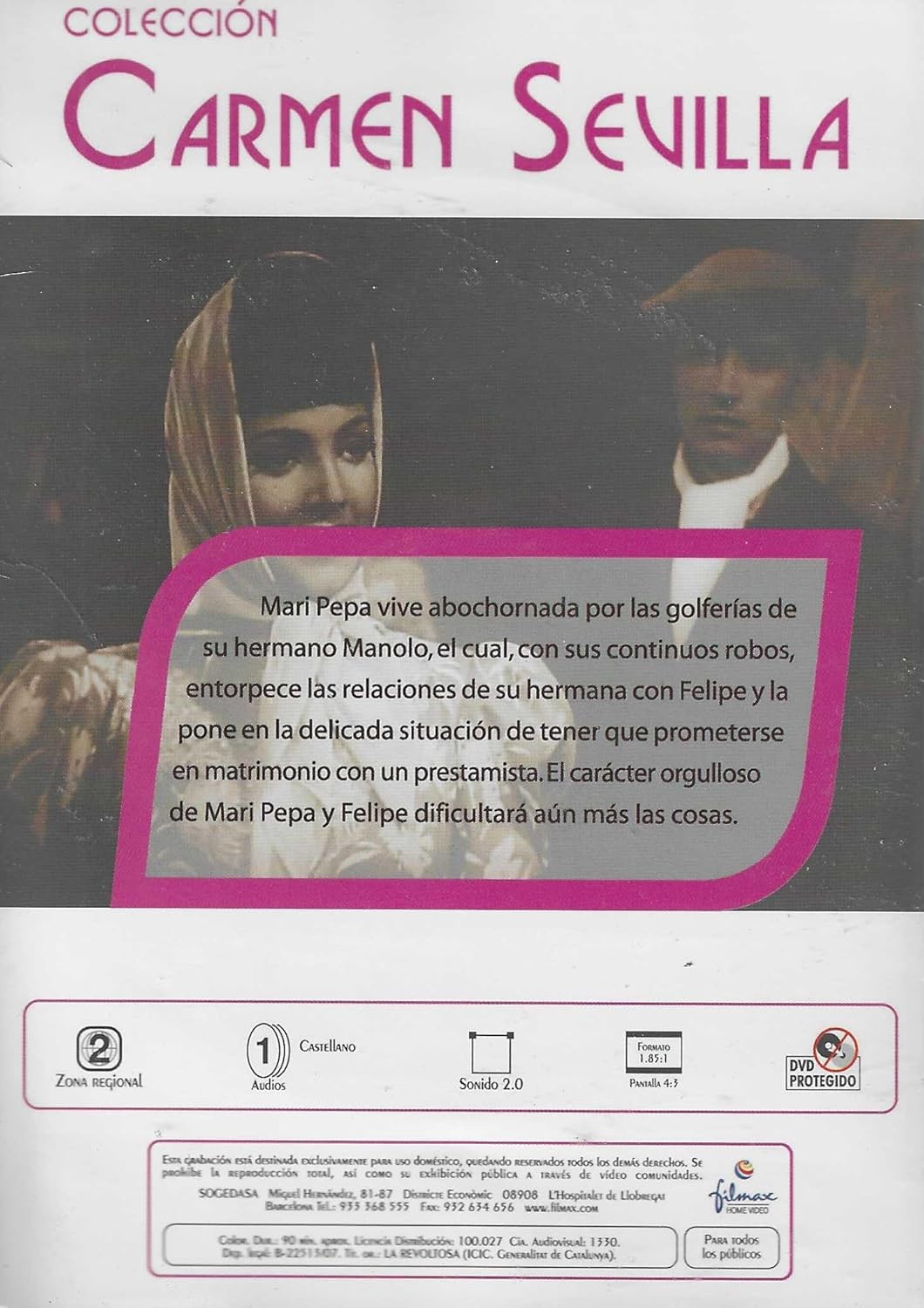 https://dvdstorespain.es/en/tv-series/128534-la-revoltosa-dvd-edicion-sobre-dvd-2024--0634065165178.html128534La Revoltosa (Edición Sobre) [DVD] (1950)Mari Pepa (Carmen Sevilla), una bella planchadora, que vive con su hermano y su tía en un variopinto patio de vecinos del antiguo Madrid, y Felipe (Tony Leblanc), un carpintero ebanista, se gustan y flirtean, pero no se lo expresan abiertamente y al final siempre acaban discutiendo por celos sin importancia. Su incipiente amor se verá truncado cuando el hermano de Mari Pepa esté en apuros por cometer un robo y por su posterior empeño. Este incidente provocará que Mari Pepa tenga que hacer caso a las atenciones del perista Don Leo (Tomás Blanco). https://dvdstorespain.es/1114142-home_default/la-revoltosa-dvd-edicion-sobre-dvd-2024-.jpg4.9587instock4.95874.9587002025-12-26T00:46:00+0100/Start/Start/DVD/Start/Films/Start/New