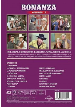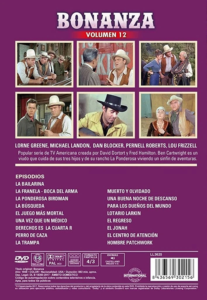 https://dvdstorespain.es/en/tv-series/36149-bonanza-dvd--8436569302156.html36149Bonanza (Volumen 12) [DVD] (1959)Serie de TV (1959-1973). 14 temporadas. 430 episodios. Viejo Oeste americano (1860-1870). Todos los caminos pasan por La Ponderosa, el rancho de los Cartwight, que se encuentra en los alrededores de Virginia City, junto al Lago Tahoe (Nevada). Ben Cartwright es un viudo que cuida de sus tres hijos Adam, Hoss y Joe, cada uno de una esposa fallecida. Por allí pasan vaqueros polvorientos, predicadores, buscadores de fortuna, viudas ricas y una inacabable galería de personajes que van y vienen llenando la pantalla de aventuras.https://dvdstorespain.es/506938-home_default/bonanza-dvd-.jpg11.4876instockLlamentol11.487611.4876002017-08-09T16:22:33+0200/Start/Start/DVD/Start/TV series/Start/New/Start/EVENING SP 20/Start/VELADA DE 20/Start/VELADA FR 20/Start/velada IT 20